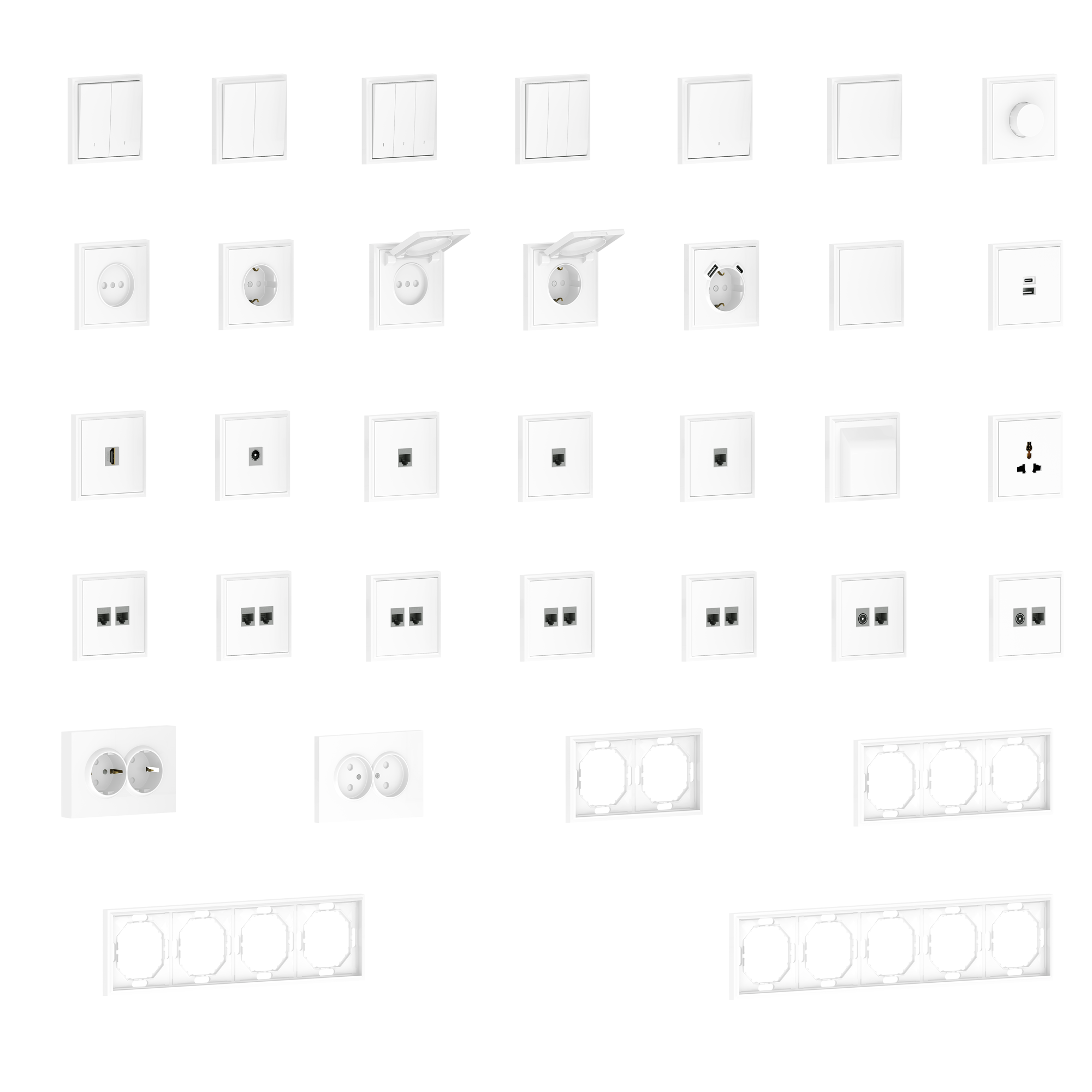 Существует несколько видов рамок: одинарные, двойные, тройные и многомодульные. Они могут быть выполнены из различных материалов, таких как пластик, металл и стекло, и отличаться по дизайну и цвету.