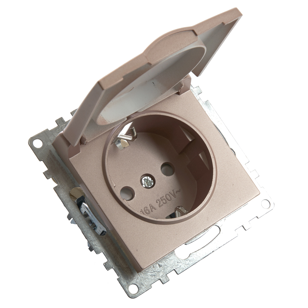 Розетка 1-местная с/з с крышкой (механизм), STEKKER GLS16-7112-02, 250В, 16А с защитной шторкой, серия Катрин, шампань