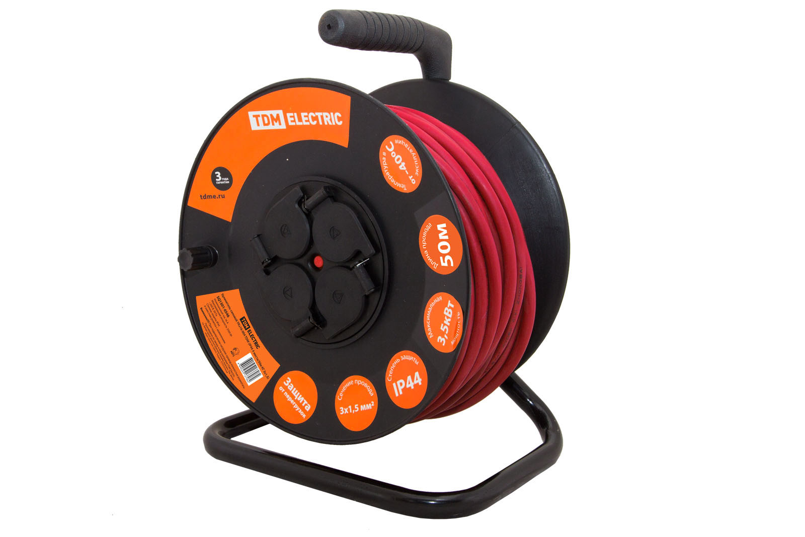 Удлинитель силовой УКз16-004 TDM (IP44 4 места/50м КГ 3х1,5 пласт. катушка) в Оренбурге