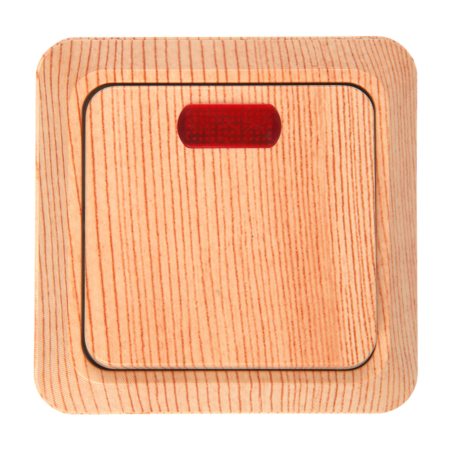 Выключатель 1-кл. открытой установки с подсветкой IP20 10А, сосна "Альфа" General в Оренбурге