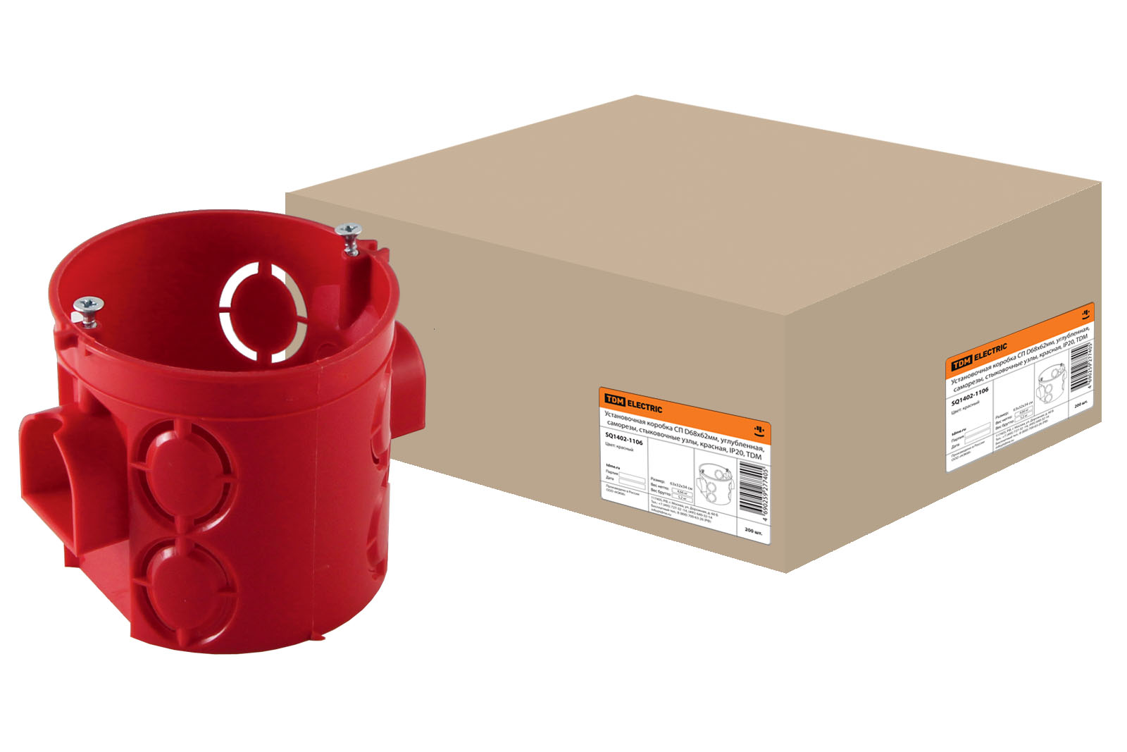 Установочная коробка СП D68х62мм, углубленная, саморезы, стыковочные узлы, красная, IP20, TDM доступен в интернет‑магазине ВольтМаркет в Оренбурге. Покупая у нас, вы получаете дополнительные преимущества: