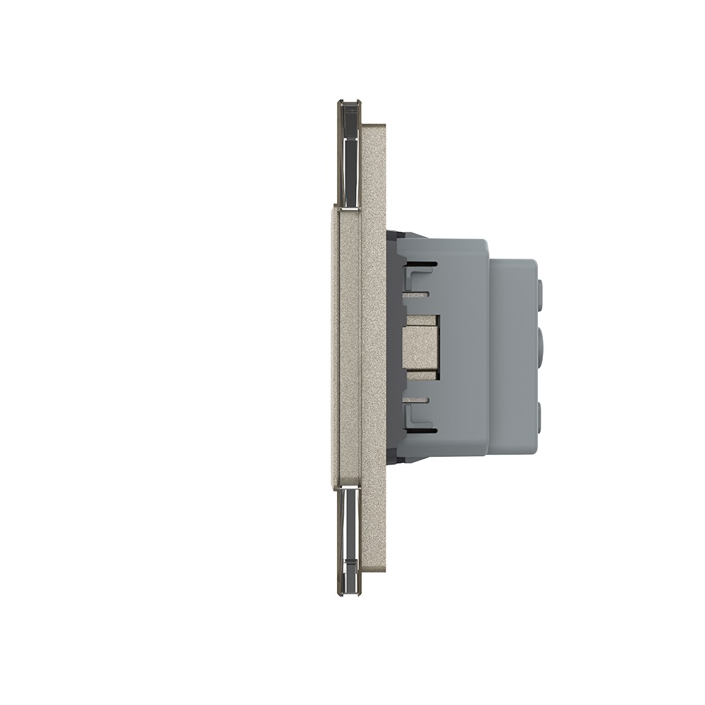 Двухклавишный сенсорный выключатель с двумя розетками 3 поста, цвет шампань Livolo в Оренбурге