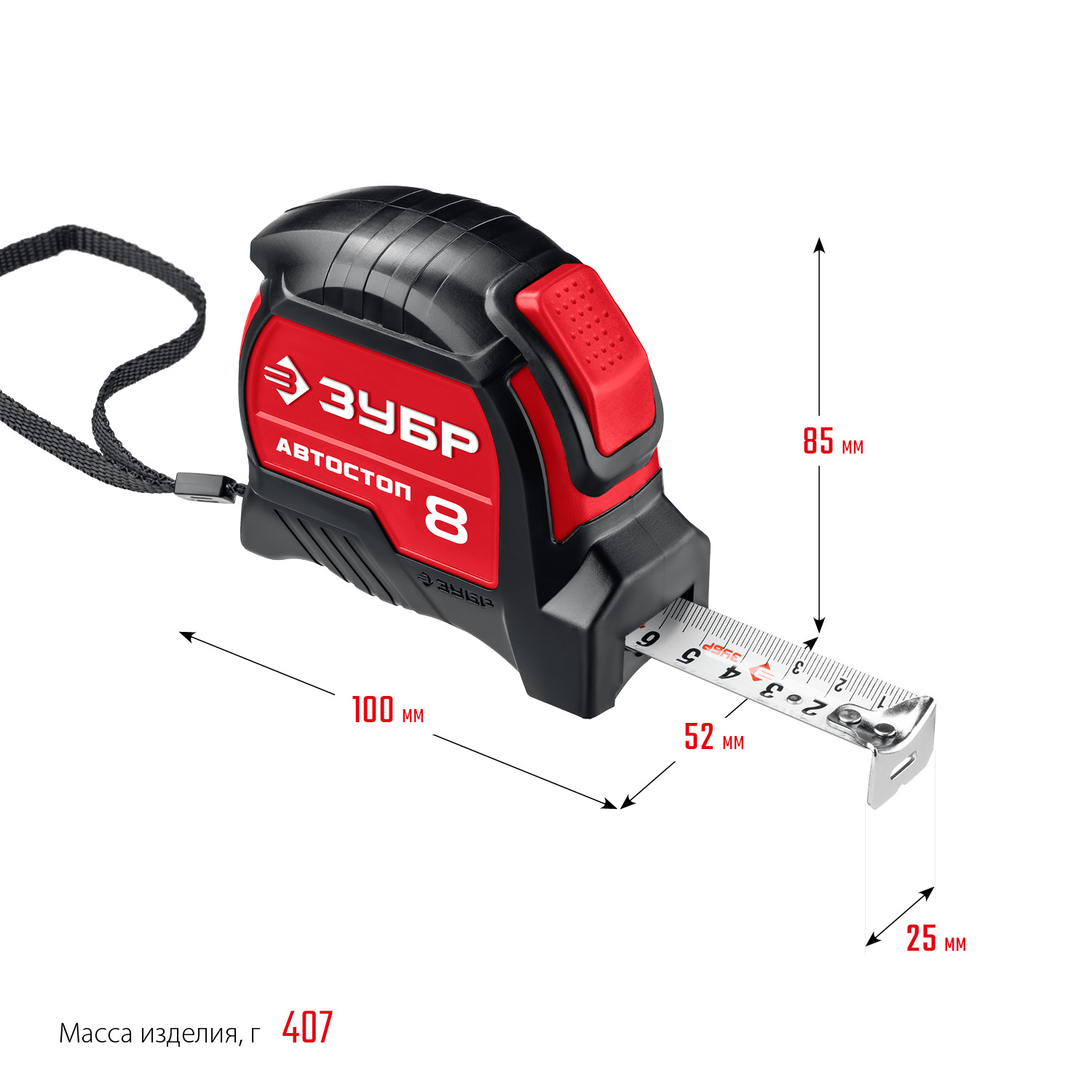Рулетка с автостопом Автостоп 8м х 25мм ЗУБР