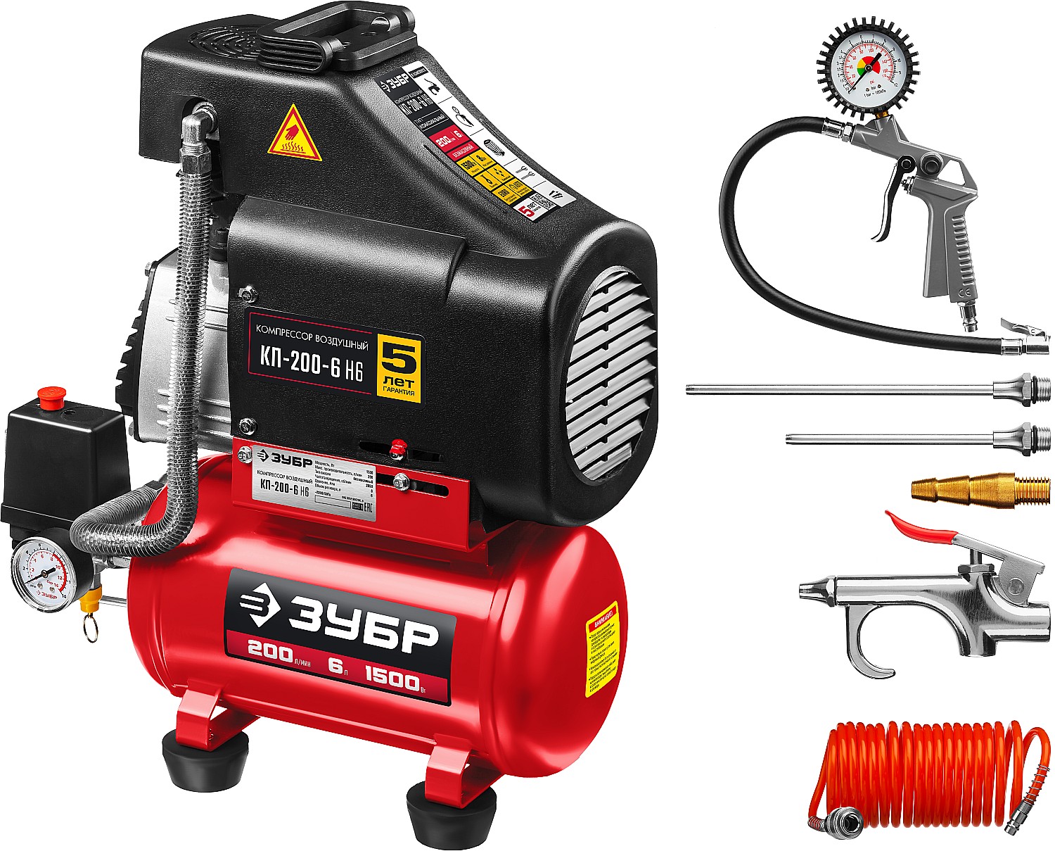 Компрессор воздушный безмасляный с набором аксессуаров, 200 л/мин, 6 л, 1500 Вт, ЗУБР доступен в интернет‑магазине ВольтМаркет в Оренбурге. Покупая у нас, вы получаете дополнительные преимущества: