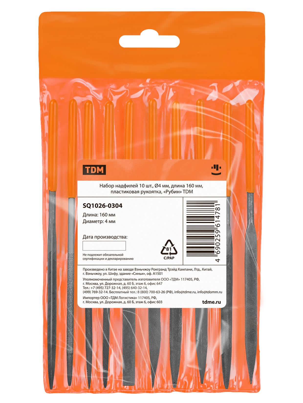 Набор надфилей 10 шт, Ø4 мм, длина 160 мм, пластиковая рукоятка, "Рубин" TDM в Оренбурге