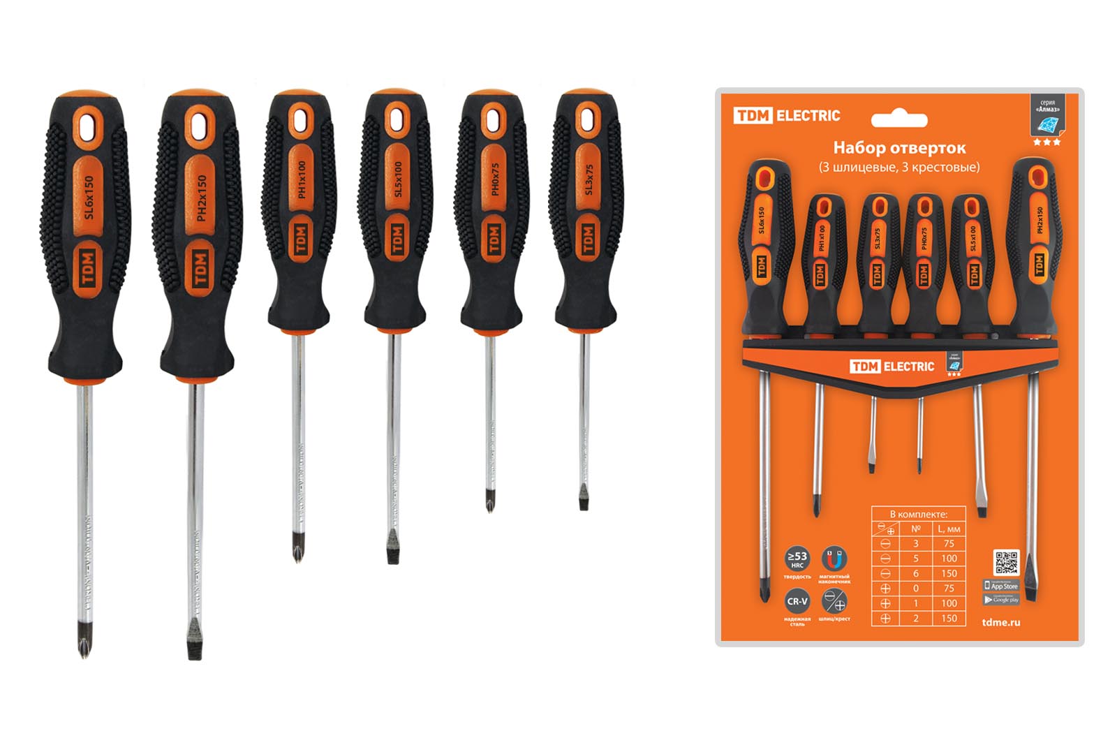 Набор отверток 6 шт.: SL:3x75;5x100;6x150, PH:0х75;1x100;2x150 (пласт. держатель), CR-V "Алмаз" TDM доступен в интернет‑магазине ВольтМаркет. Покупая у нас, вы получаете дополнительные преимущества: