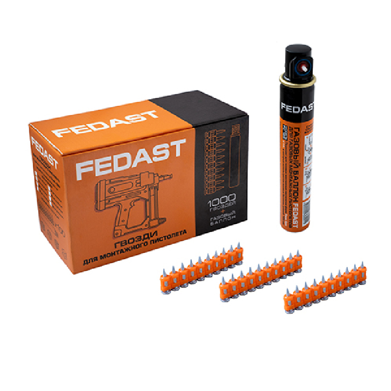 Гвозди 3.0*22 мм для монтажного пистолета с кованым наконечником Bullet point в комплекте с газовым баллоном 165 мм FEDAST