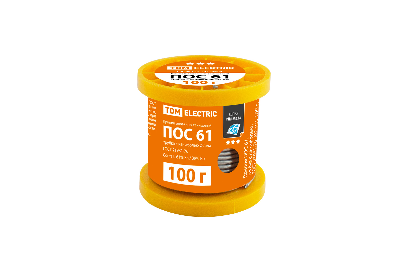 Припой ПОС 61, трубка с канифолью, ГОСТ 21931-76, Ø2 мм, 100 г, катушка, серия "Алмаз" TDM доступен в интернет‑магазине ВольтМаркет. Покупая у нас, вы получаете дополнительные преимущества: