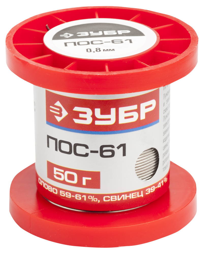 Припой, ПОС 61, проволока, 50г, 0,8мм ЗУБР доступен в интернет‑магазине ВольтМаркет. Покупая у нас, вы получаете дополнительные преимущества: