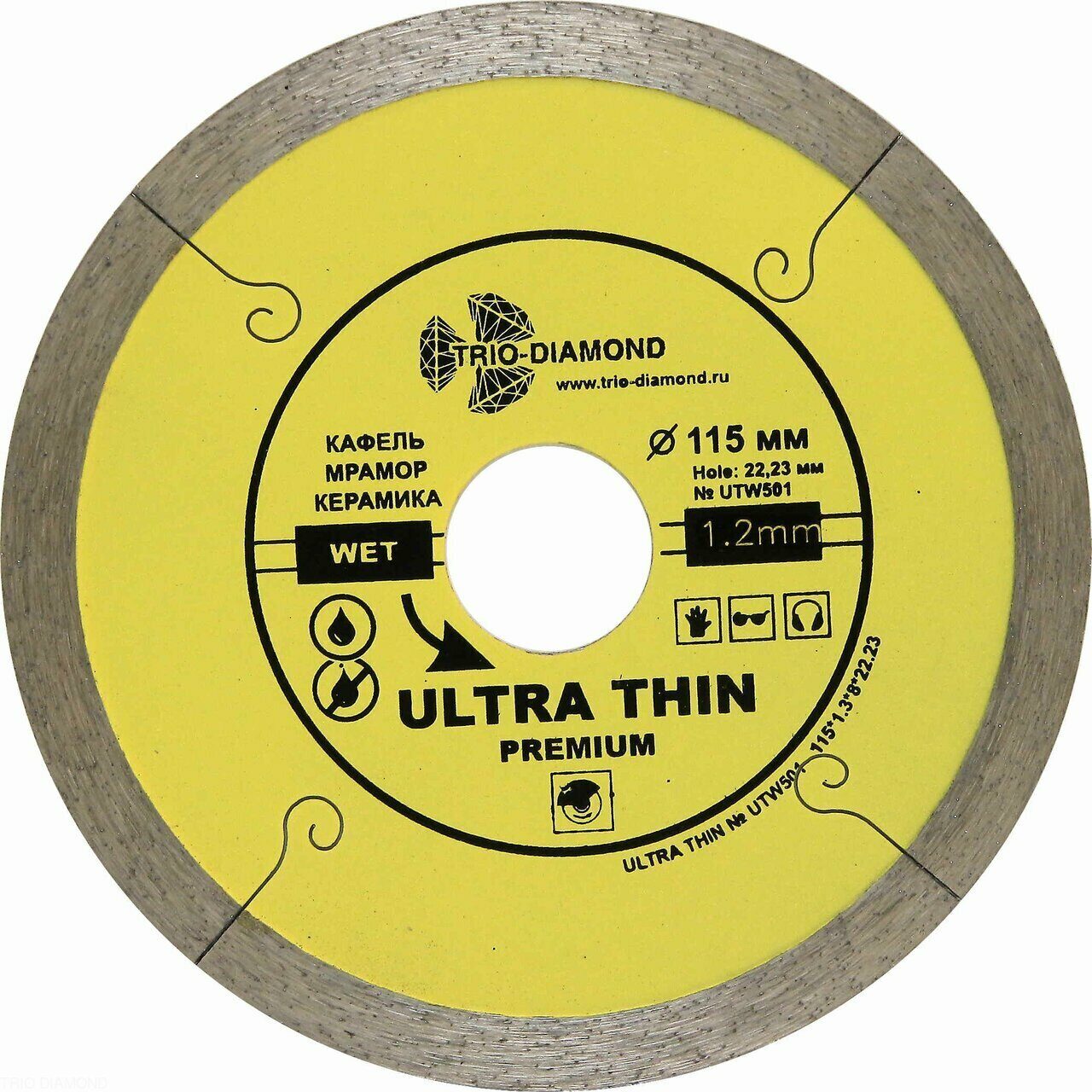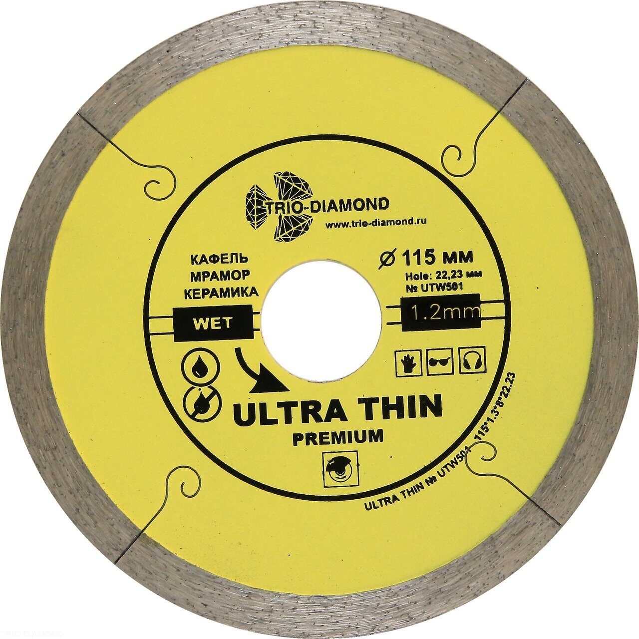 Диск алмазный отрезной 115*22,23 Сплошной ультратонкий UTW501 Trio-Diamond