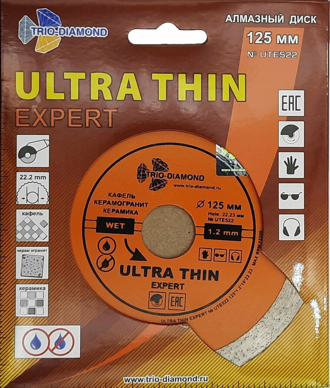 Диск алмазный отрезной 125*22,23 Сплошной ультратонкий Эксперт hot press UTE522 Trio-Diamond