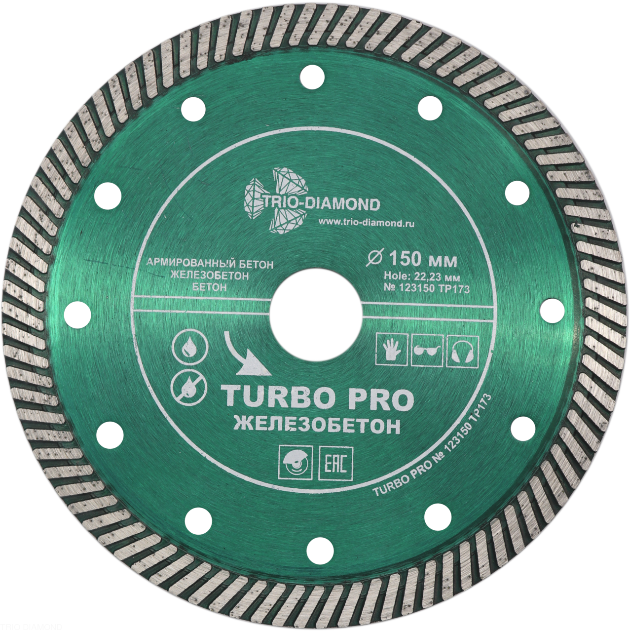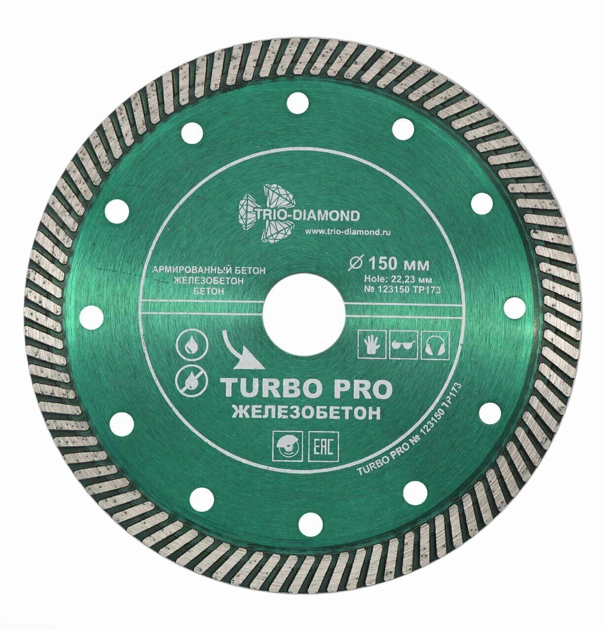 Диск алмазный отрезной 150*22,23 Турбо Железобетон TP173 Trio-Diamond