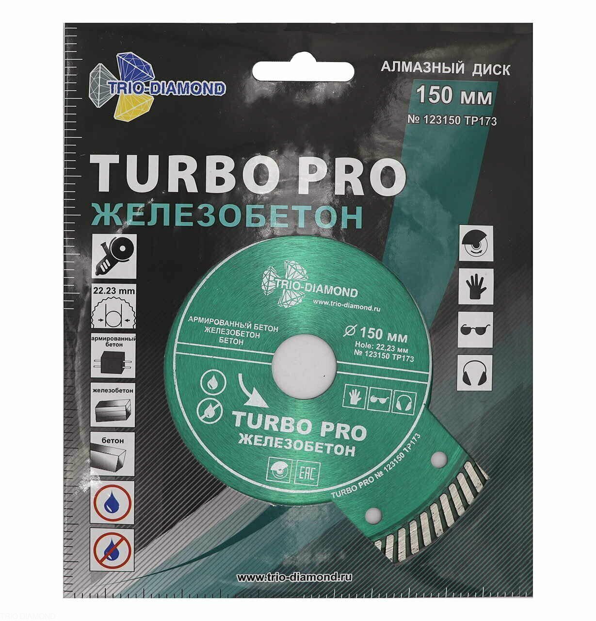 Диск алмазный отрезной 150*22,23 Турбо Железобетон TP173 Trio-Diamond доступен в интернет‑магазине ВольтМаркет. Покупая у нас, вы получаете дополнительные преимущества: