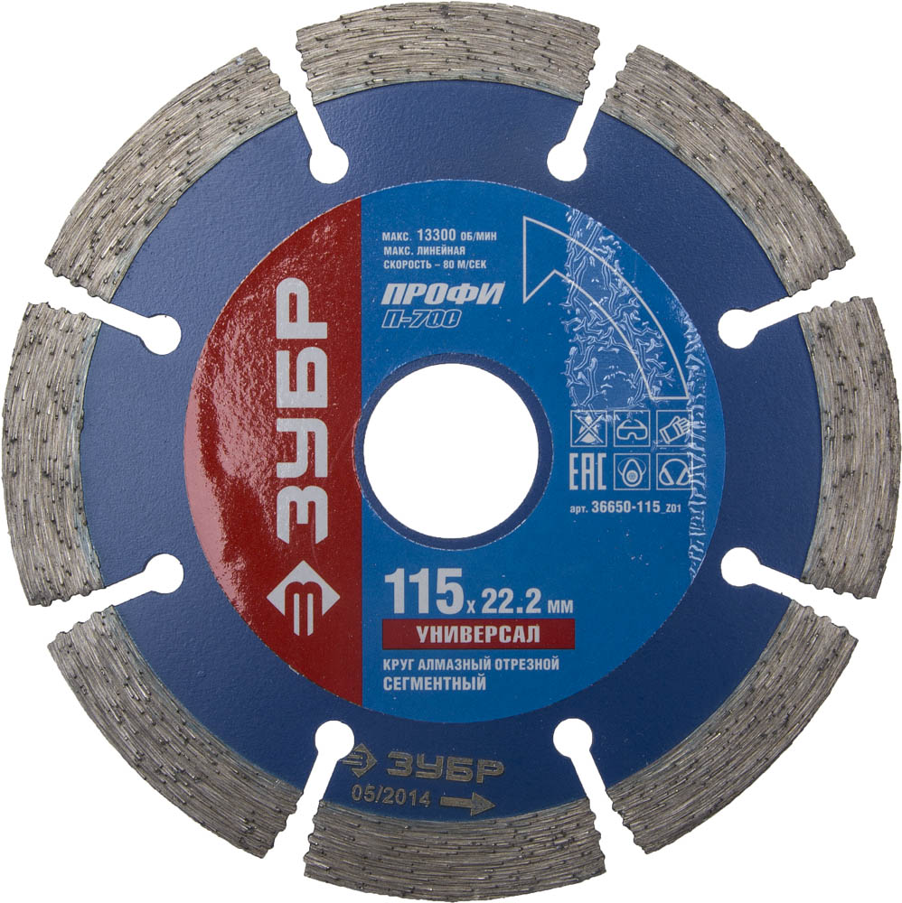Т-700 УНИВЕРСАЛ 115 мм, диск алмазный отрезной по бетону, кирпичу, граниту, Профессионал ЗУБР доступен в интернет‑магазине ВольтМаркет. Покупая у нас, вы получаете дополнительные преимущества: