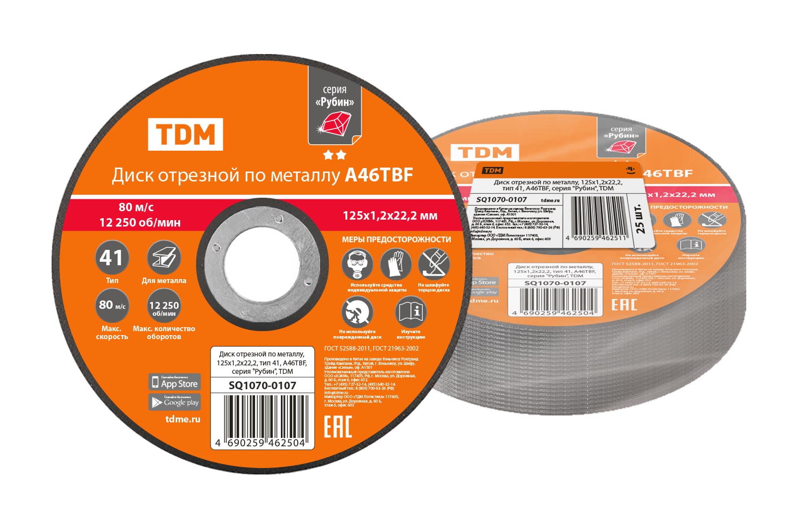Диск отрезной по металлу, 125х1,2х22,2, тип 41, A46TBF, серия "Рубин", TDM доступен в интернет‑магазине ВольтМаркет. Покупая у нас, вы получаете дополнительные преимущества: