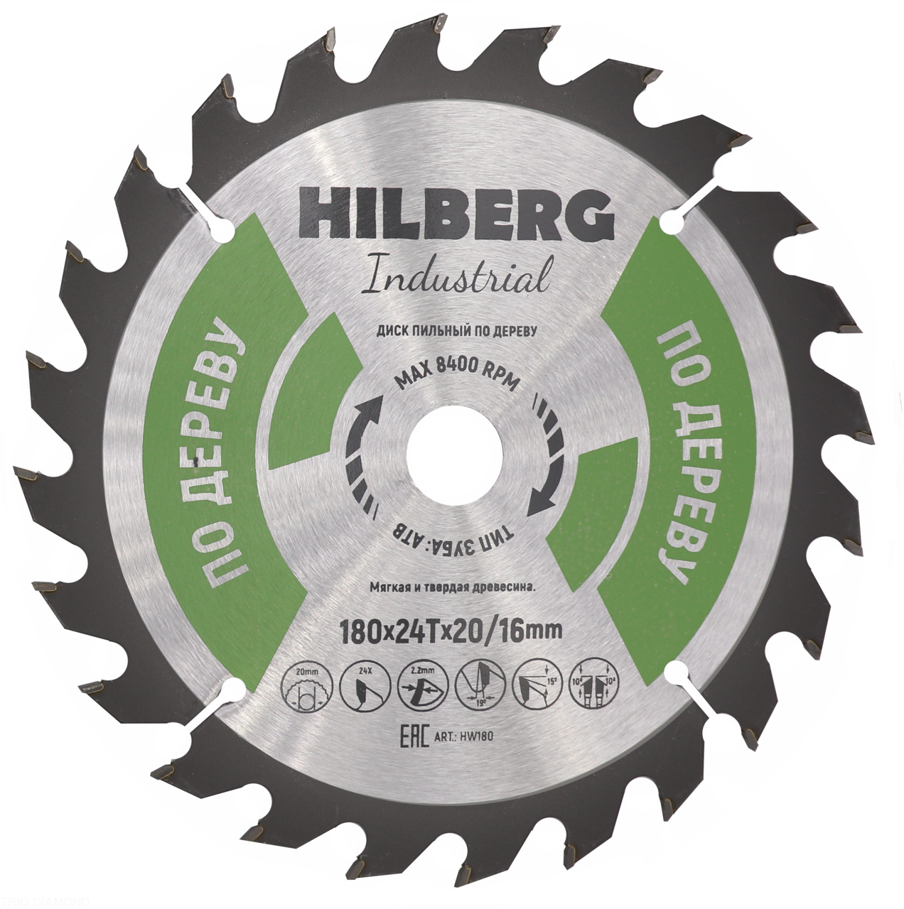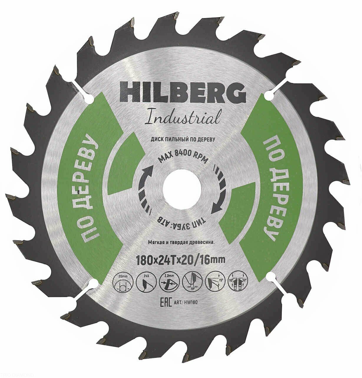 Диск пильный Industrial Дерево 180*20/16*24Т HW180 Hilberg