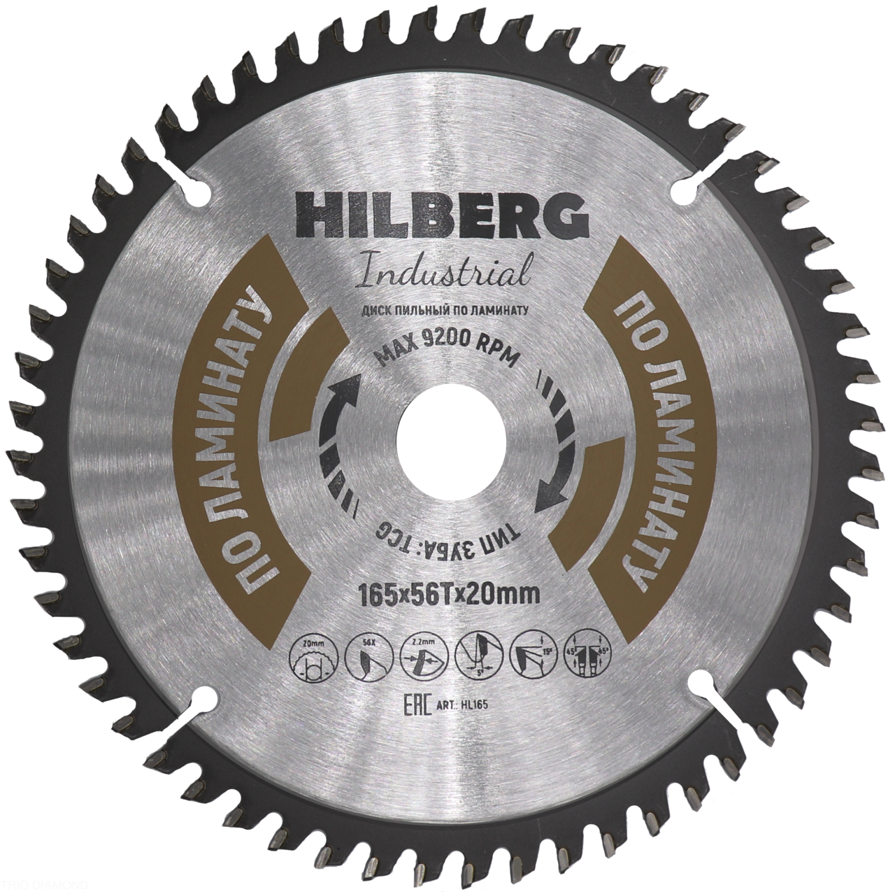 Диск пильный Industrial Ламинат 165*20*56Т HL165 Hilberg