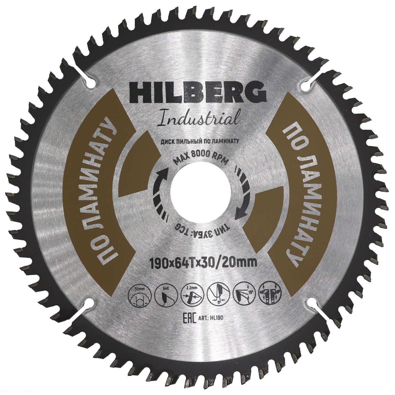 Диск пильный Industrial Ламинат 190*30/20*64Т HL190 Hilberg