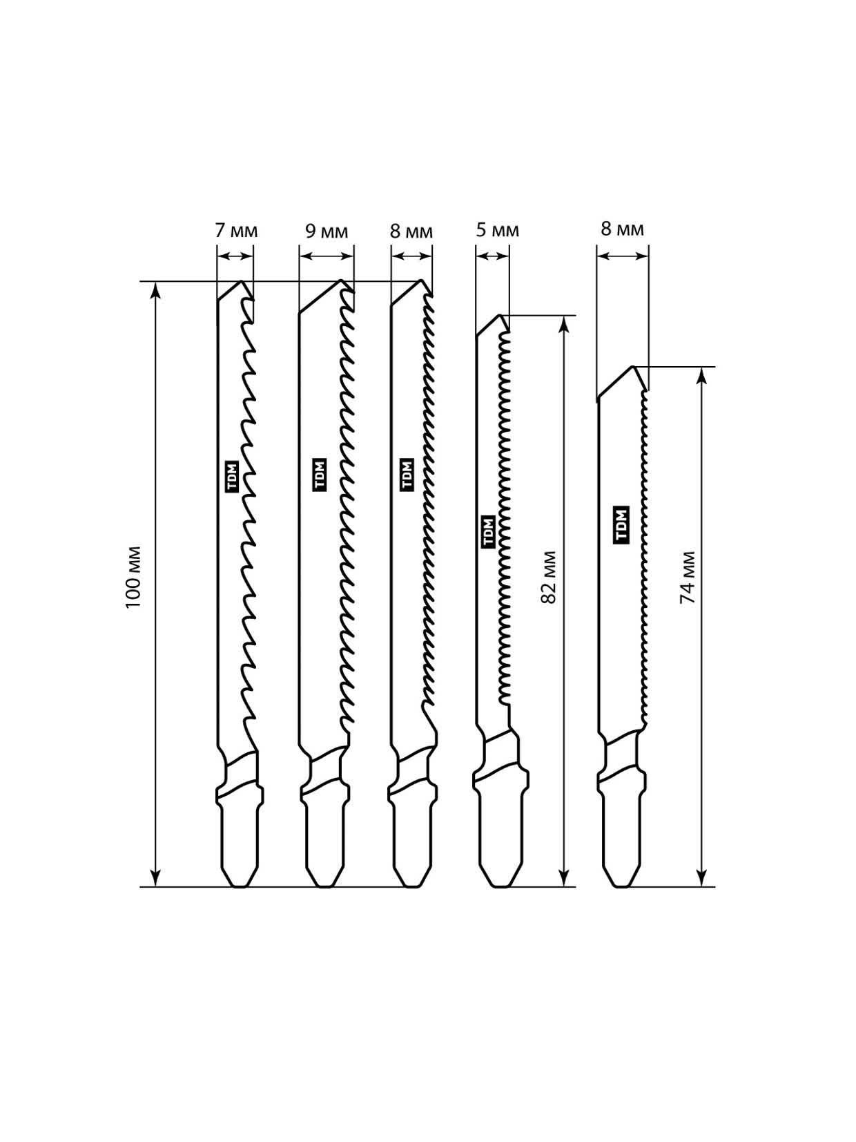 Набор пилок для электролобзика по дер: T101AO,T101B,T111C,244D, по метал. T118A, 5 шт, "Рубин", TDM
