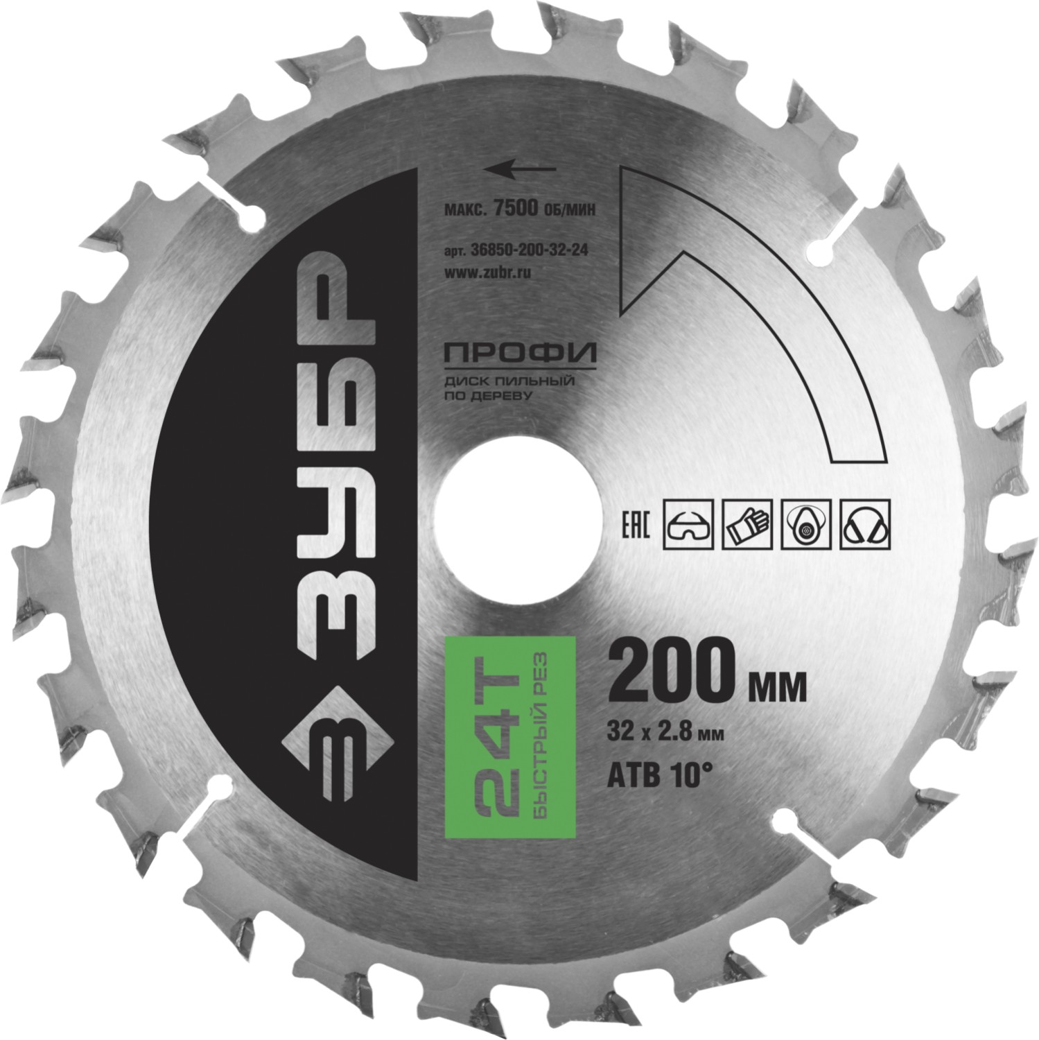 Быстрый рез 200х32мм 24Т, диск пильный по дереву ЗУБР