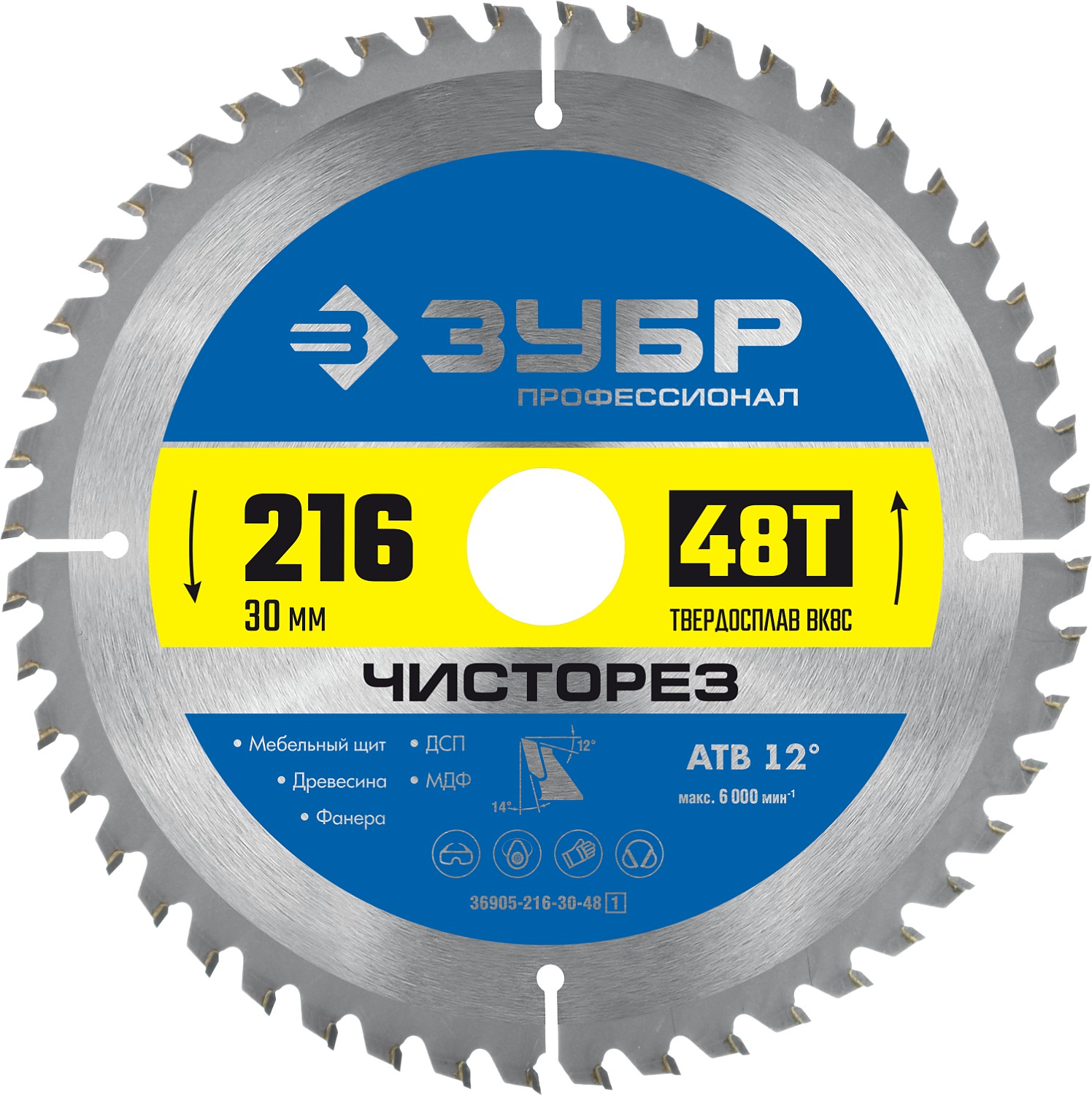 Чисторез 216 x 30мм 48Т, диск пильный по дереву ЗУБР