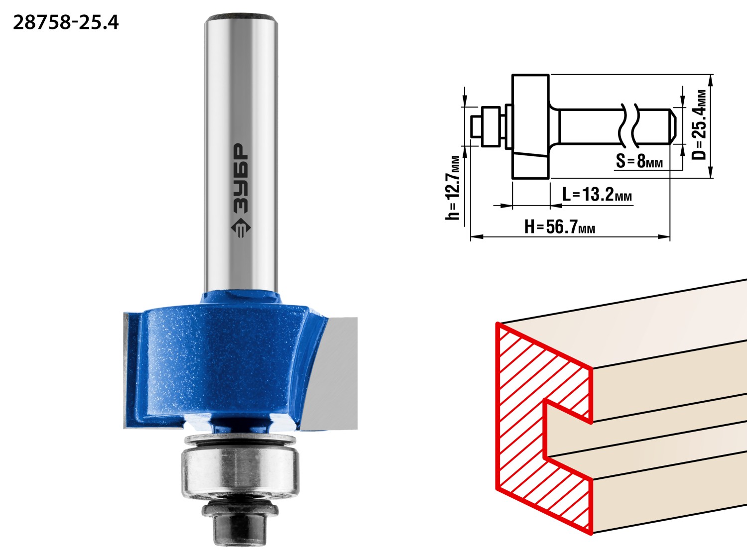 25.4x13мм, хвостовик 8мм, фреза фальцевая ЗУБР в Оренбурге