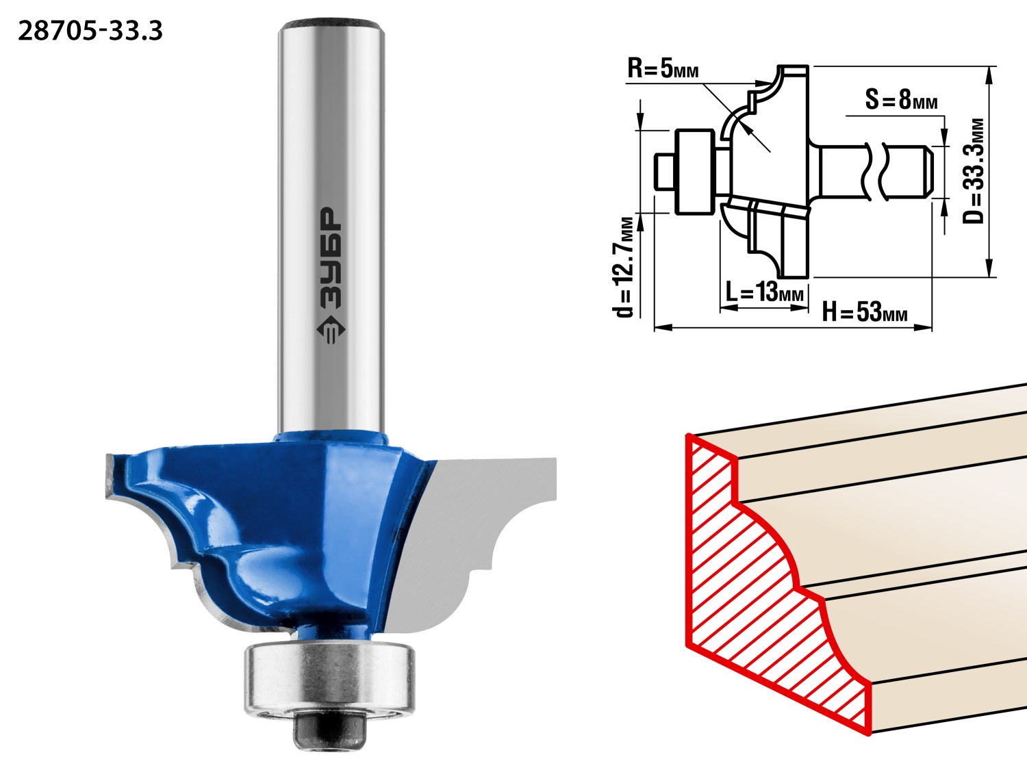 33,3x13мм, радиус 5мм, фреза кромочная калевочная №4 ЗУБР