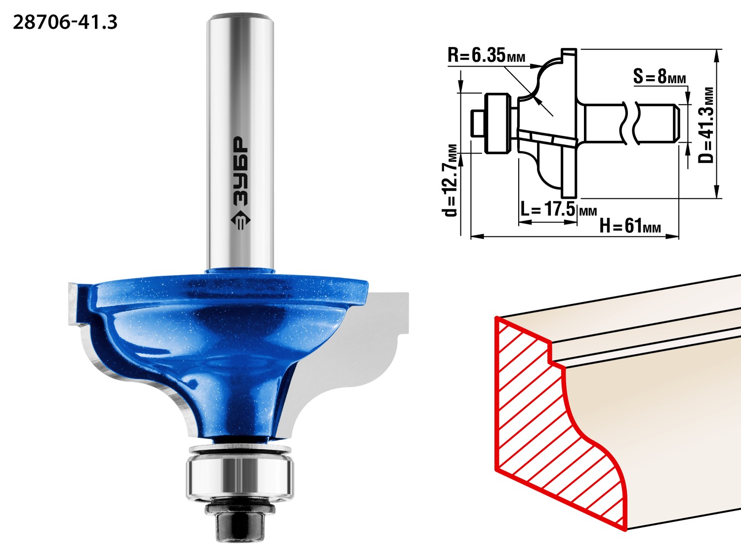 41,3x18мм, радиус 6.3мм, фреза кромочная калевочная №5 ЗУБР в Оренбурге
