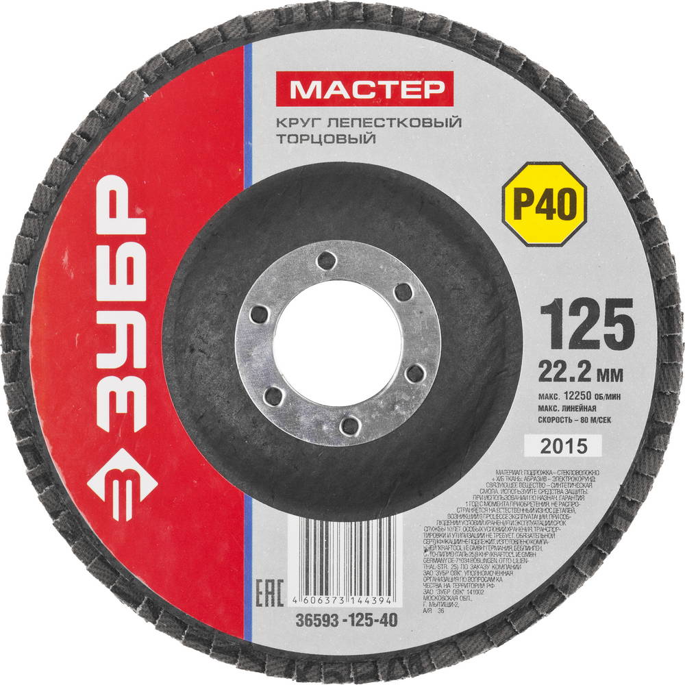 Круг лепестковый торцевой, 125мм P40, тип КЛТ 1, Мастер ЗУБР