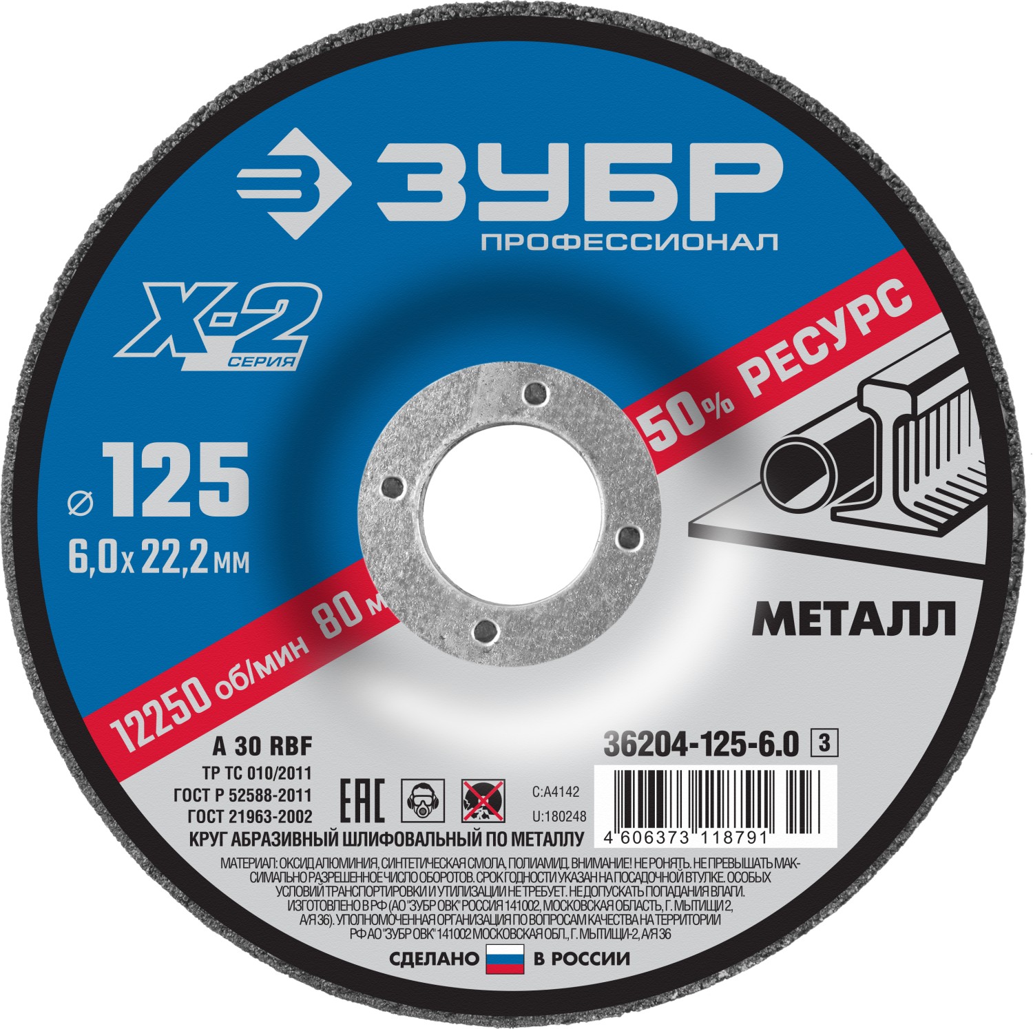 Круг шлифовальный "X-2" по металлу, 125х6х22,23мм, ЗУБР