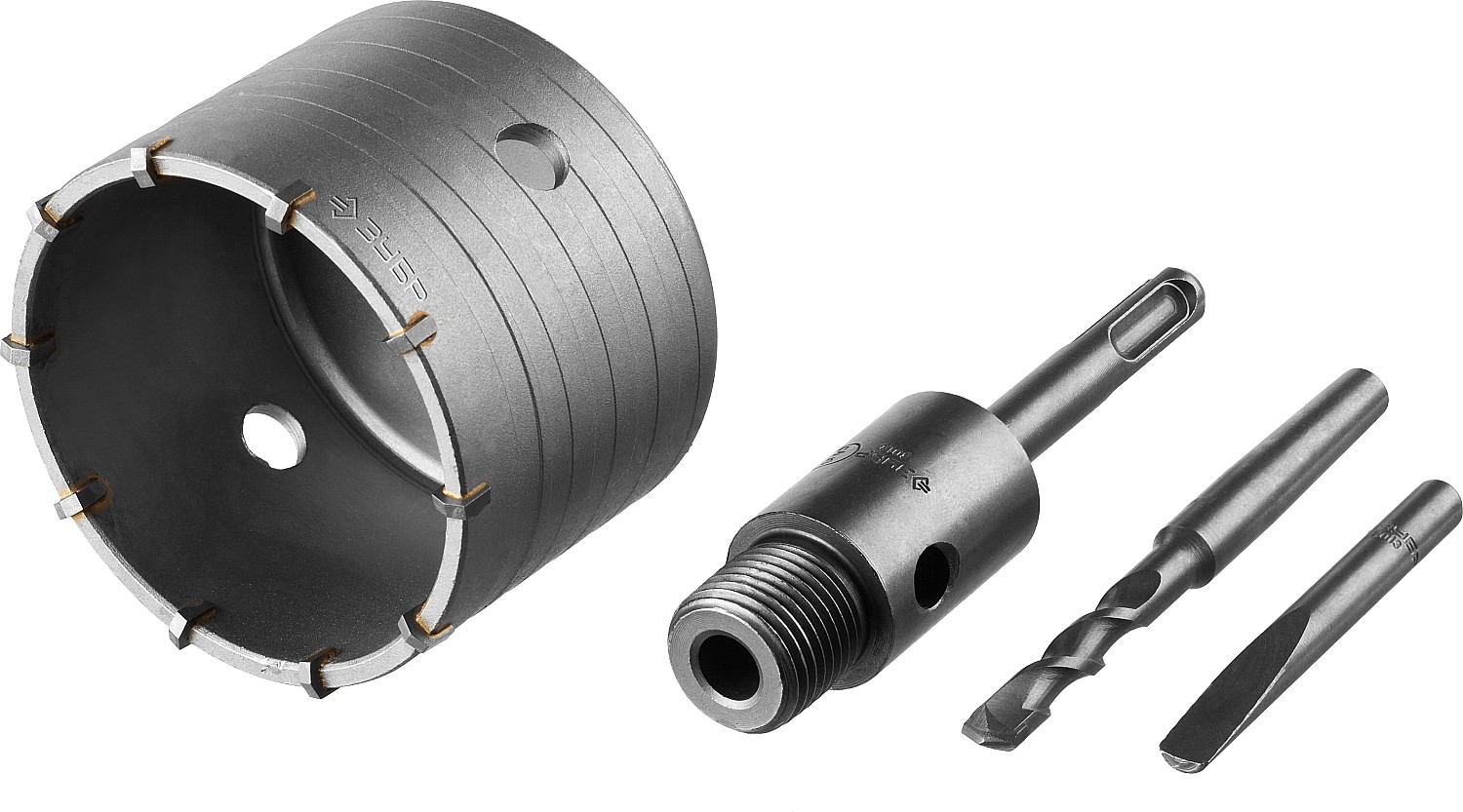 Коронка буровая, коническая посадка центрирующего сверла, SDS-Plus хвостовик, в сборе, 80мм ЗУБР