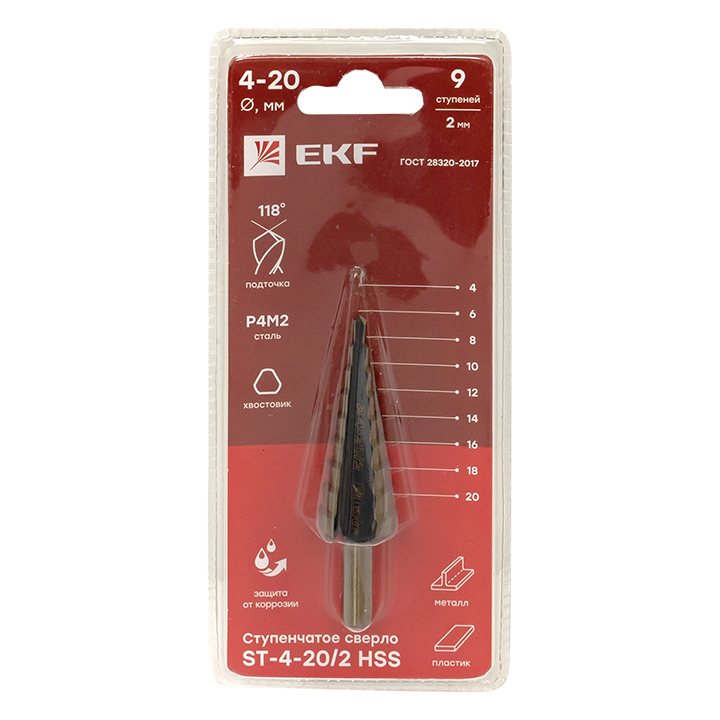 Ступенчатое сверло ST-4-20/2 HSS (9 ступ,) EKF доступен в интернет‑магазине ВольтМаркет в Оренбурге. Покупая у нас, вы получаете дополнительные преимущества: