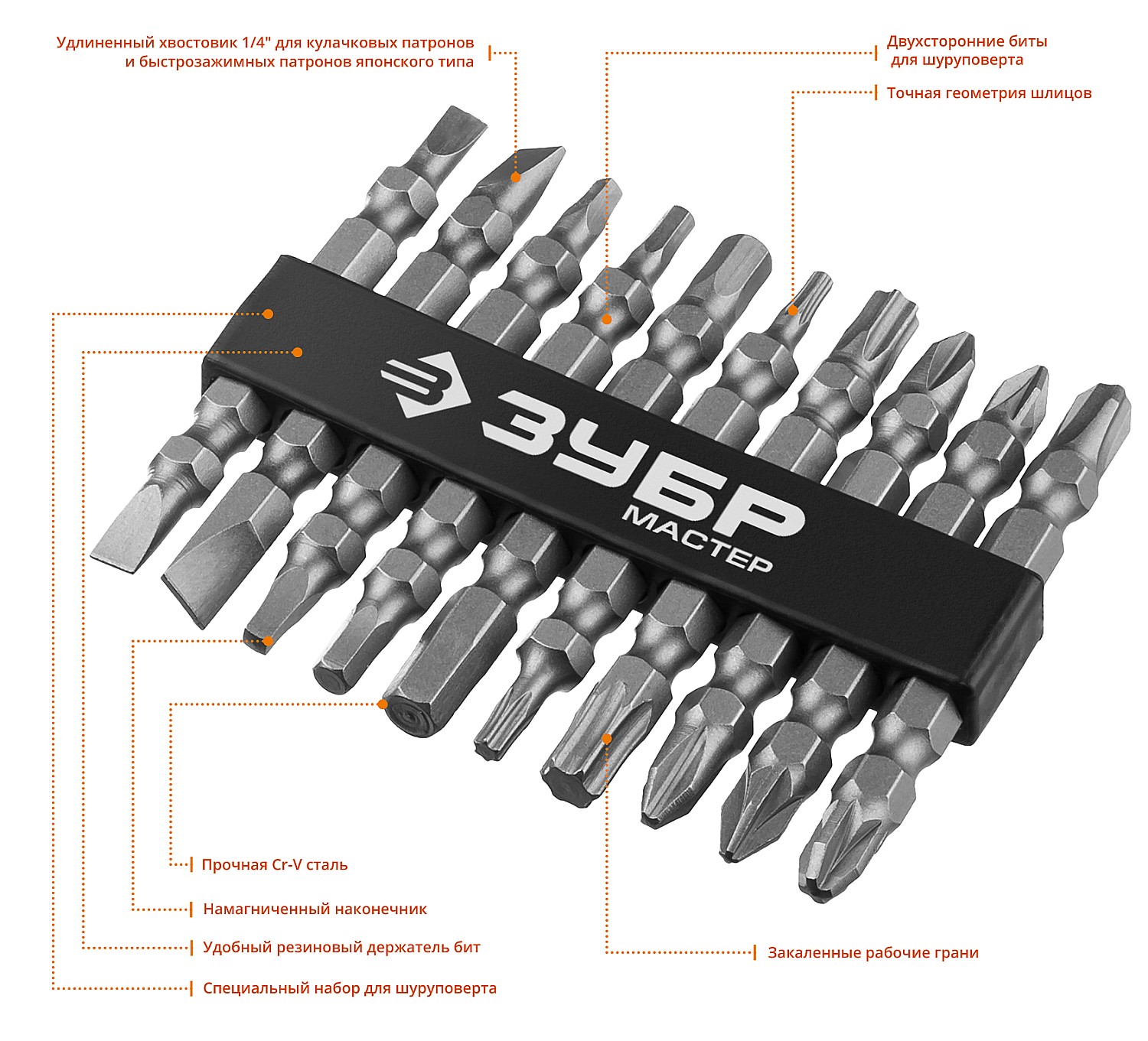Набор : Биты длинные "МХ-10", Cr-V, двусторонние для шуруповерта в держателе ЗУБР доступен в интернет‑магазине ВольтМаркет в Оренбурге. Покупая у нас, вы получаете дополнительные преимущества:
