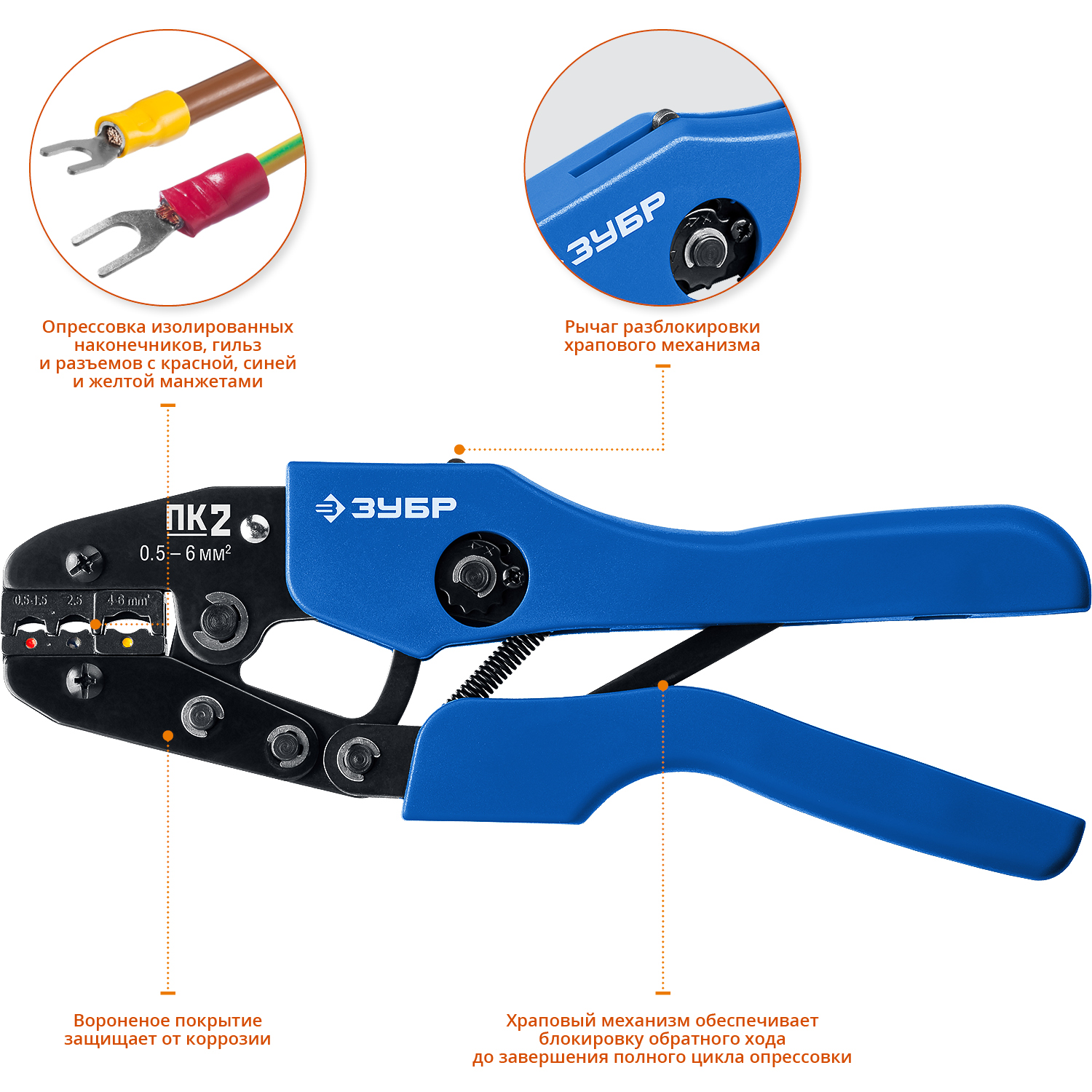 ПК-2 пресс-клещи для изолированных наконечников и муфт 0.5 -6 мм.кв, Профессионал ЗУБР в Оренбурге