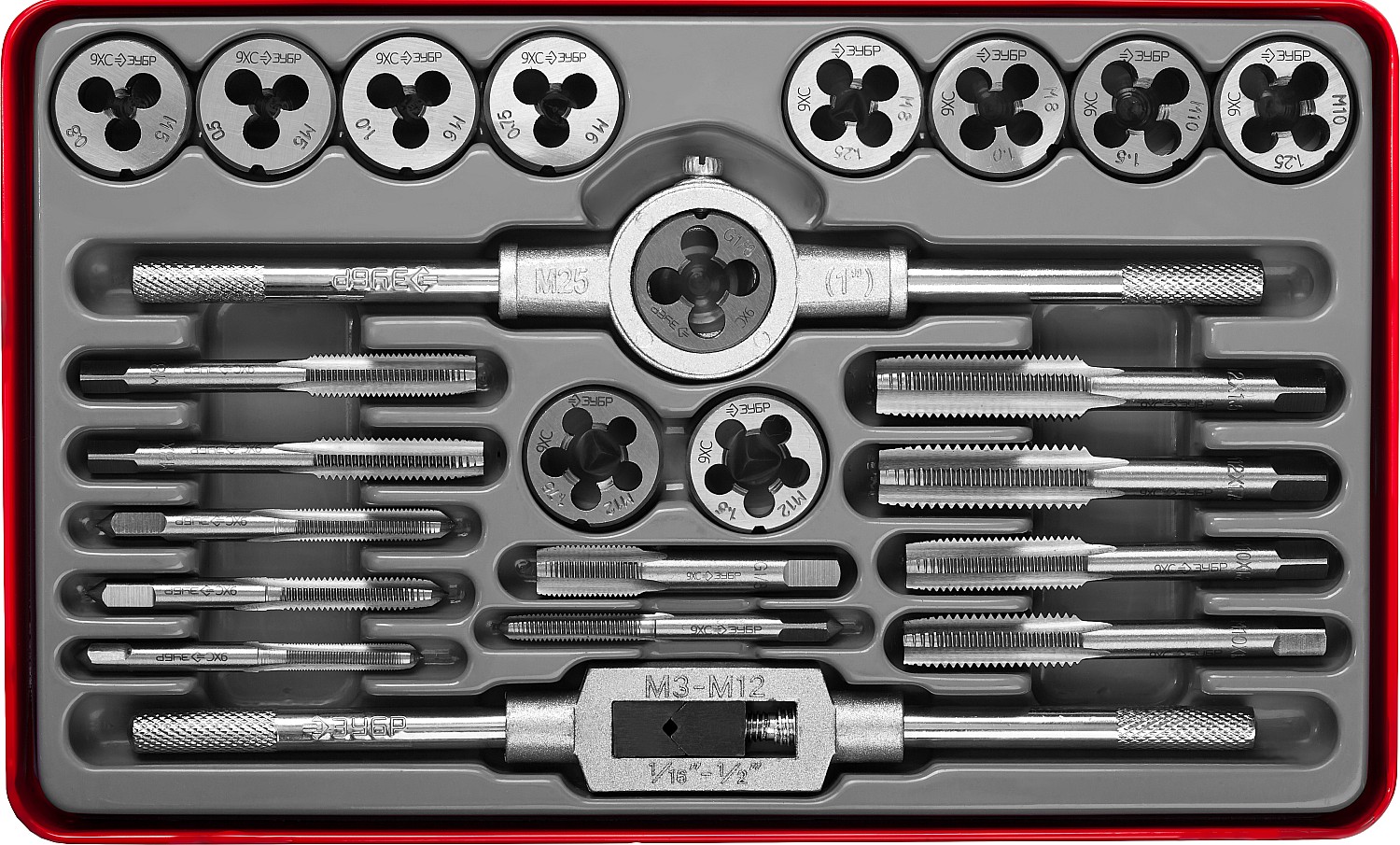 24 предмета, набор метчиков и плашек, сталь 9ХС ЗУБР в Оренбурге