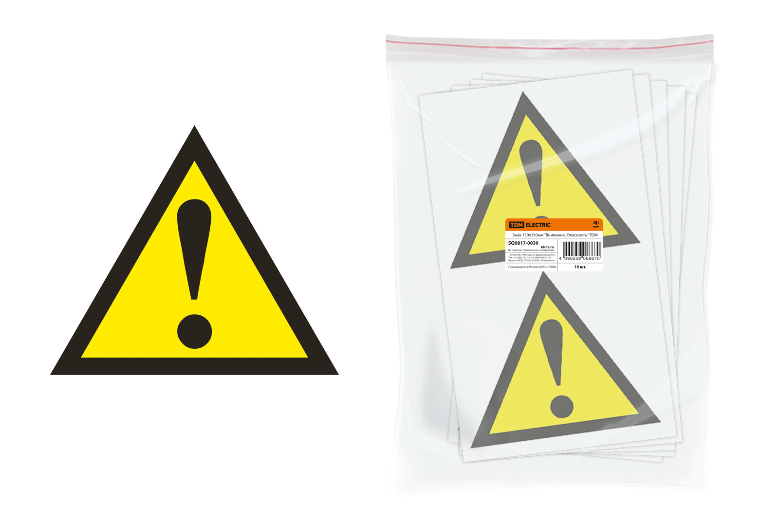 Знак 150х150мм "Внимание. Опасность" TDM доступен в интернет‑магазине ВольтМаркет в Оренбурге. Покупая у нас, вы получаете дополнительные преимущества: