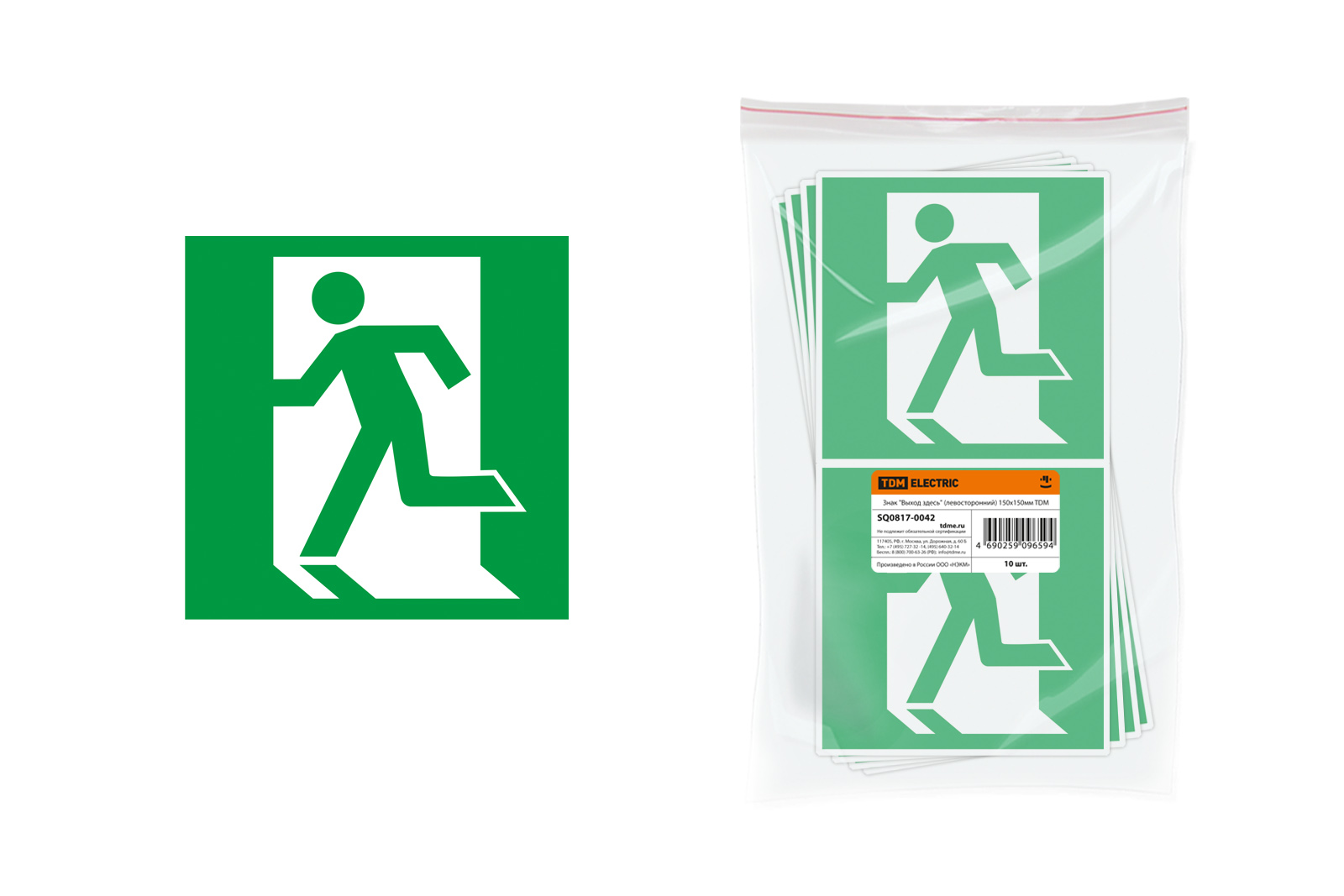 Знак "Выход здесь" (левосторонний) 150х150мм TDM доступен в интернет‑магазине ВольтМаркет в Оренбурге. Покупая у нас, вы получаете дополнительные преимущества: