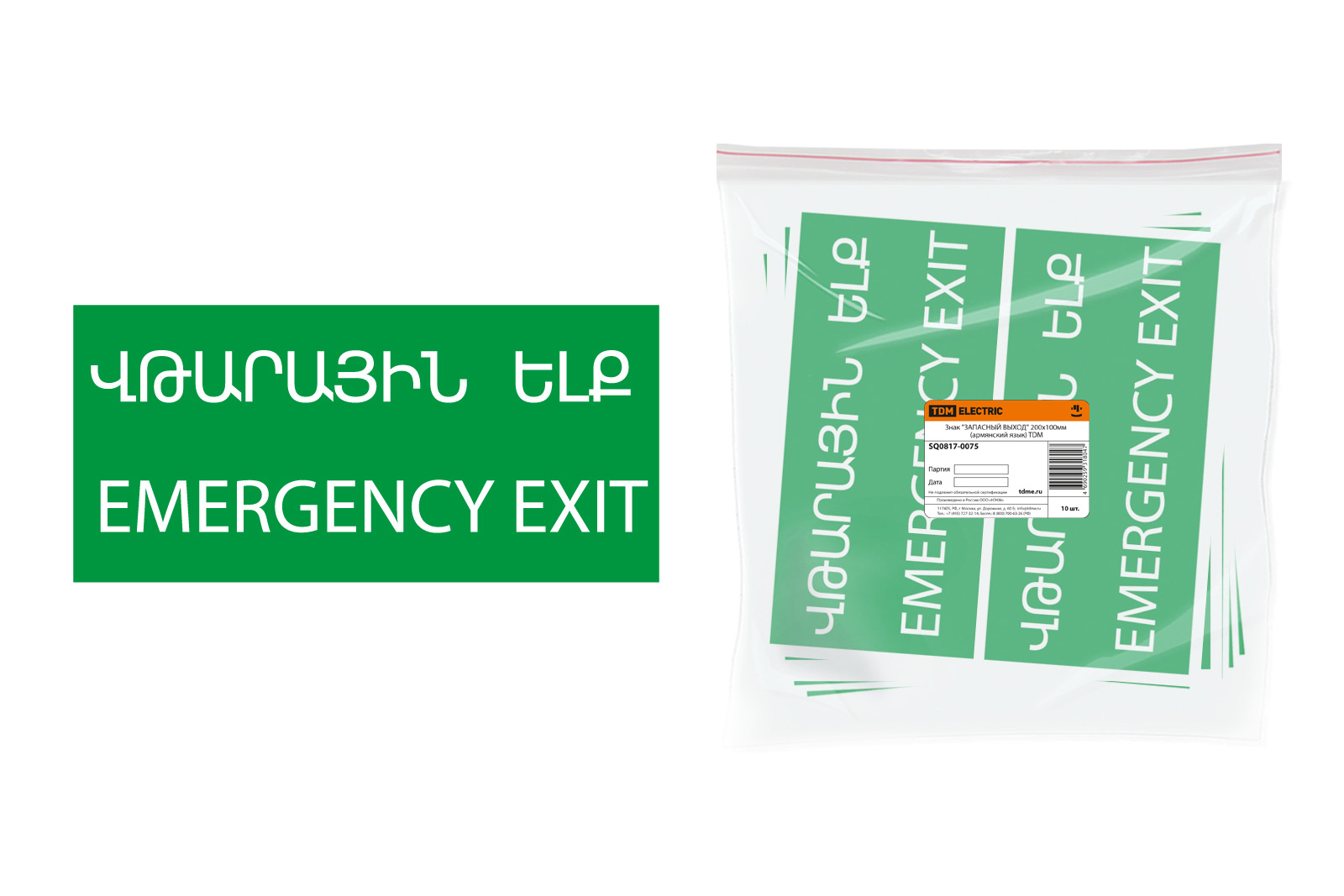 Знак "ЗАПАСНЫЙ ВЫХОД" 200х100мм (армянский язык) TDM доступен в интернет‑магазине ВольтМаркет в Оренбурге. Покупая у нас, вы получаете дополнительные преимущества: