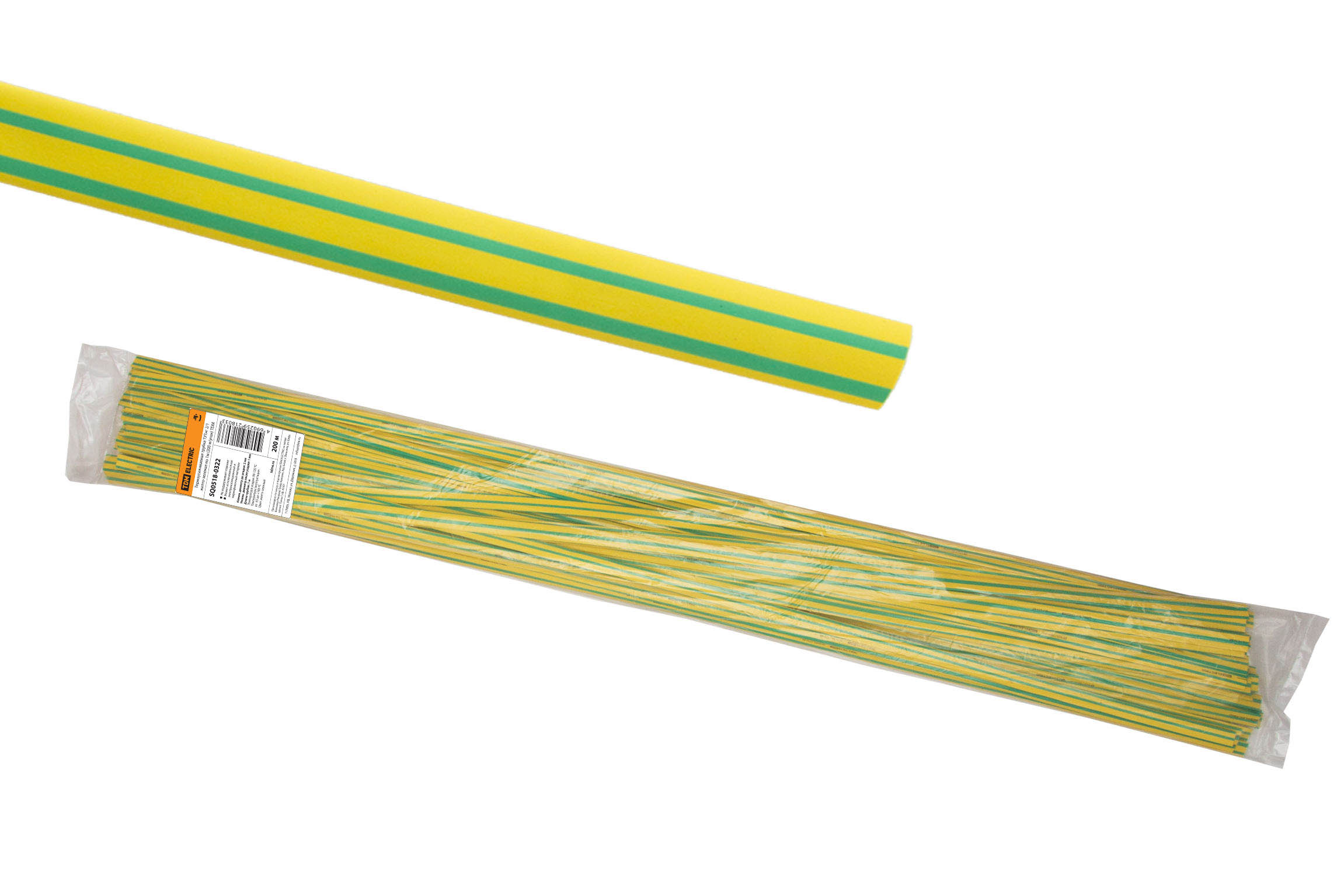 Термоусаживаемая трубка ТУТнг 2/1 желто-зеленая по 1м (200 м/упак) TDM