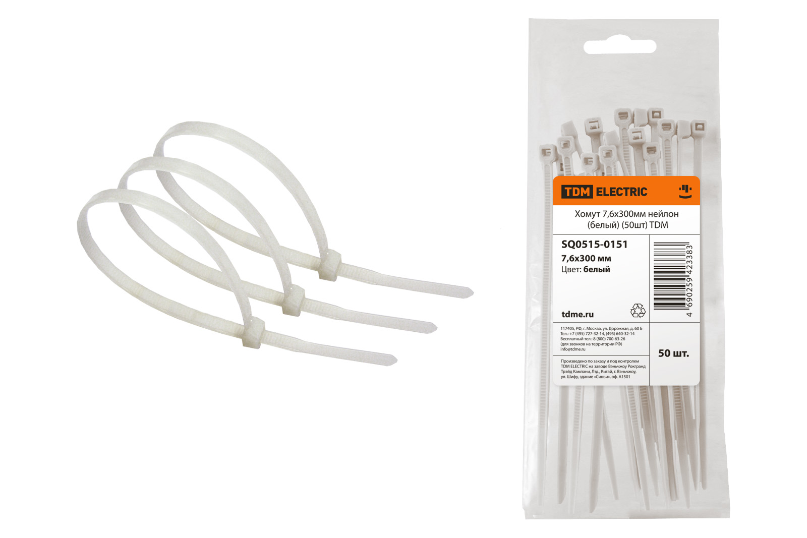 Хомут 7,6х300мм нейлон (белый) (50шт) TDM