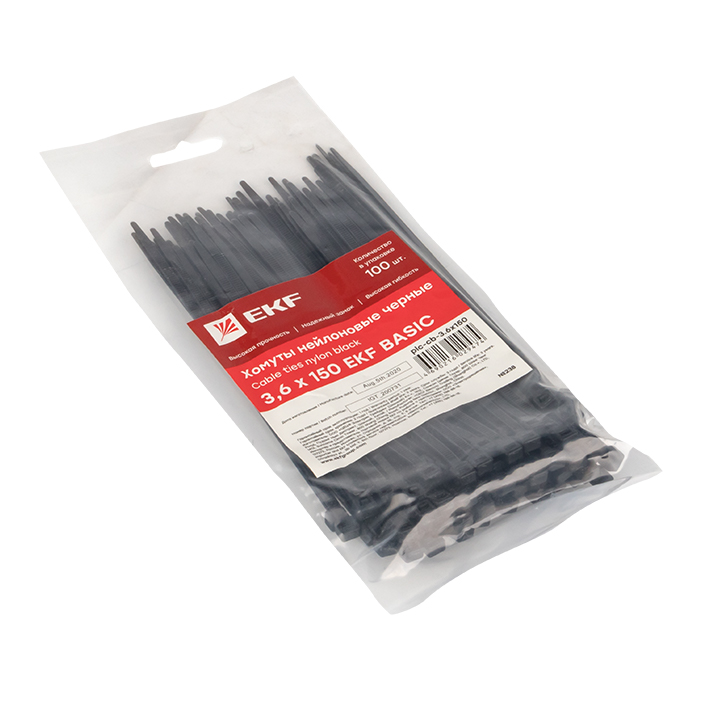 Хомут нейлоновый черный (3,6х150) (100шт) Basic EKF