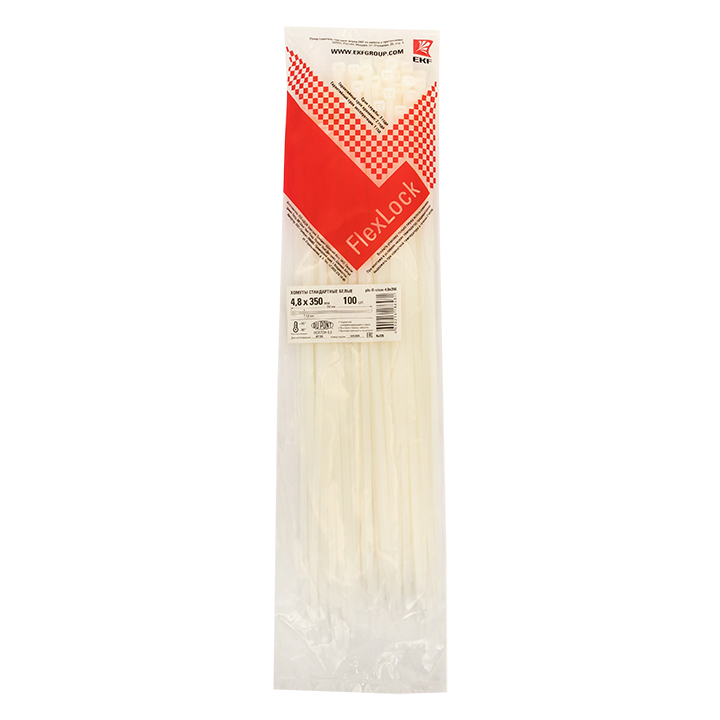Хомут P6,6 стандартный (б), 4,8x350 (100шт) FlexLock PROxima EKF