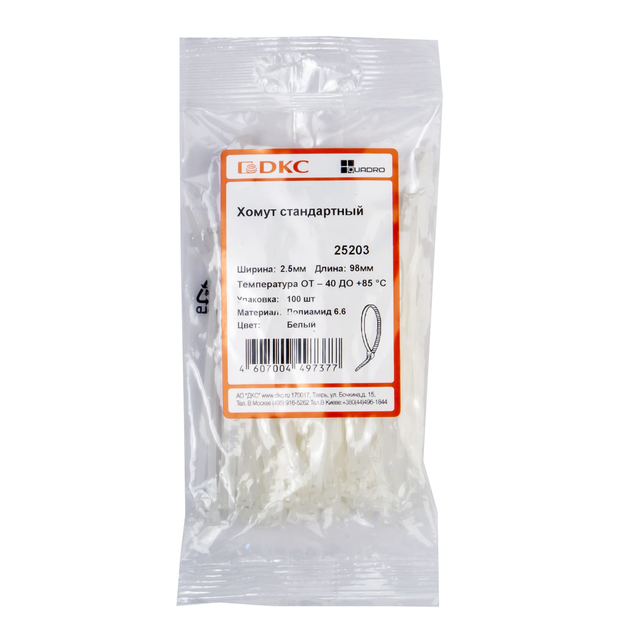 Хомут P6.6 стандартный, белый, 2,5х98 DKC