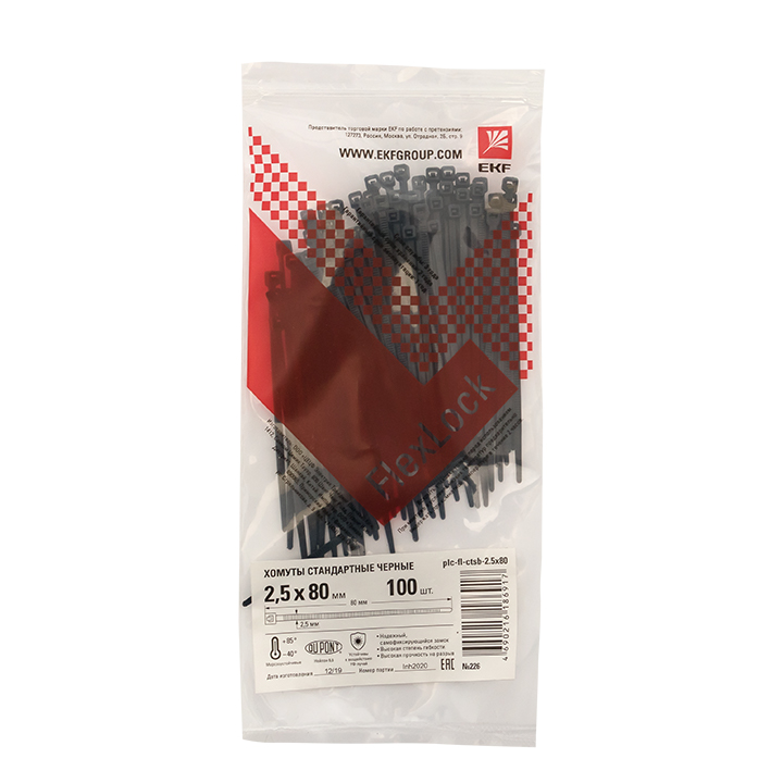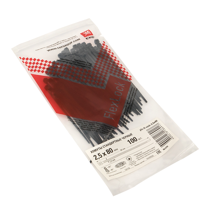Хомут P6,6 стандартный (ч), 2,5x80 (100шт) FlexLock PROxima EKF