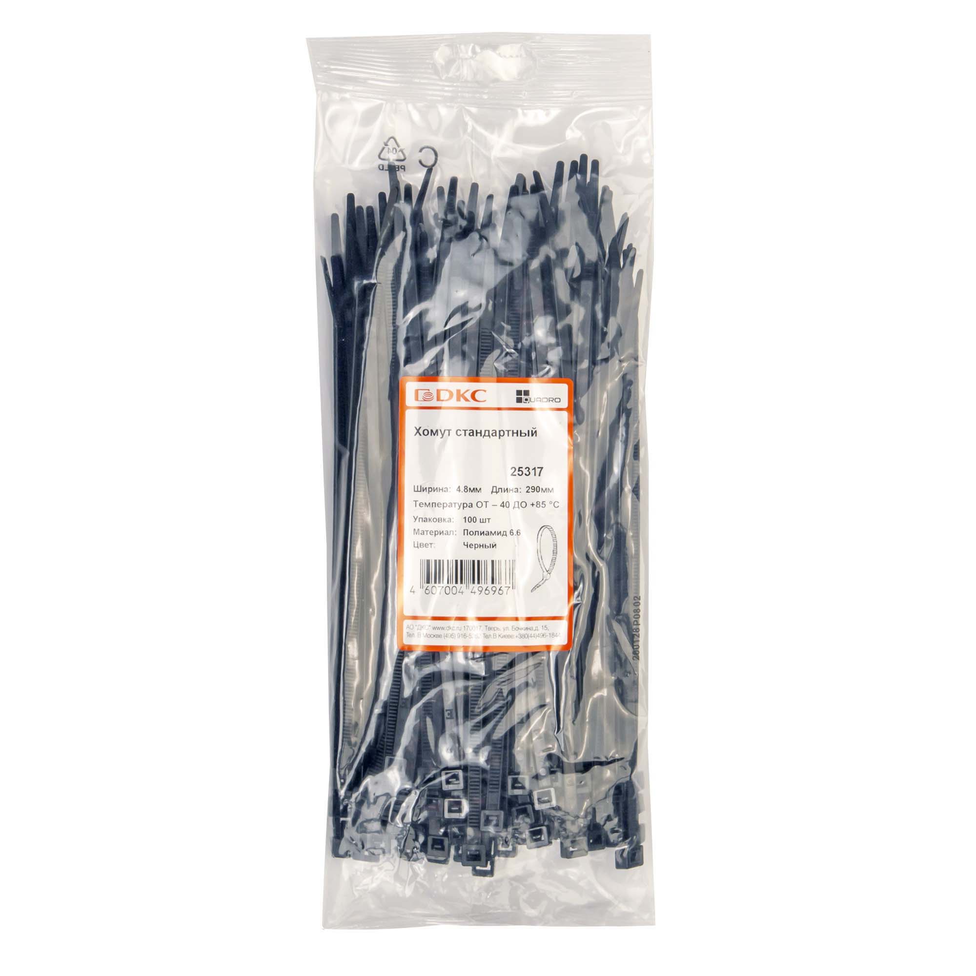 Хомут P6.6 стандартный, черный, 4,8x290 DKC