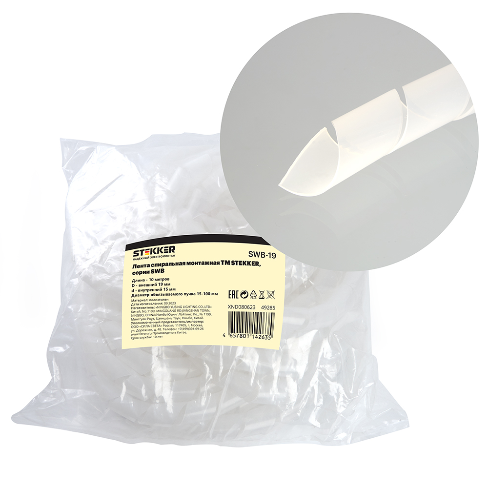 Лента спиральная монтажная STEKKER, диаметр пучка 15-100 мм, 10 м/упак, белый, SWB-19 доступен в интернет‑магазине ВольтМаркет. Покупая у нас, вы получаете дополнительные преимущества: