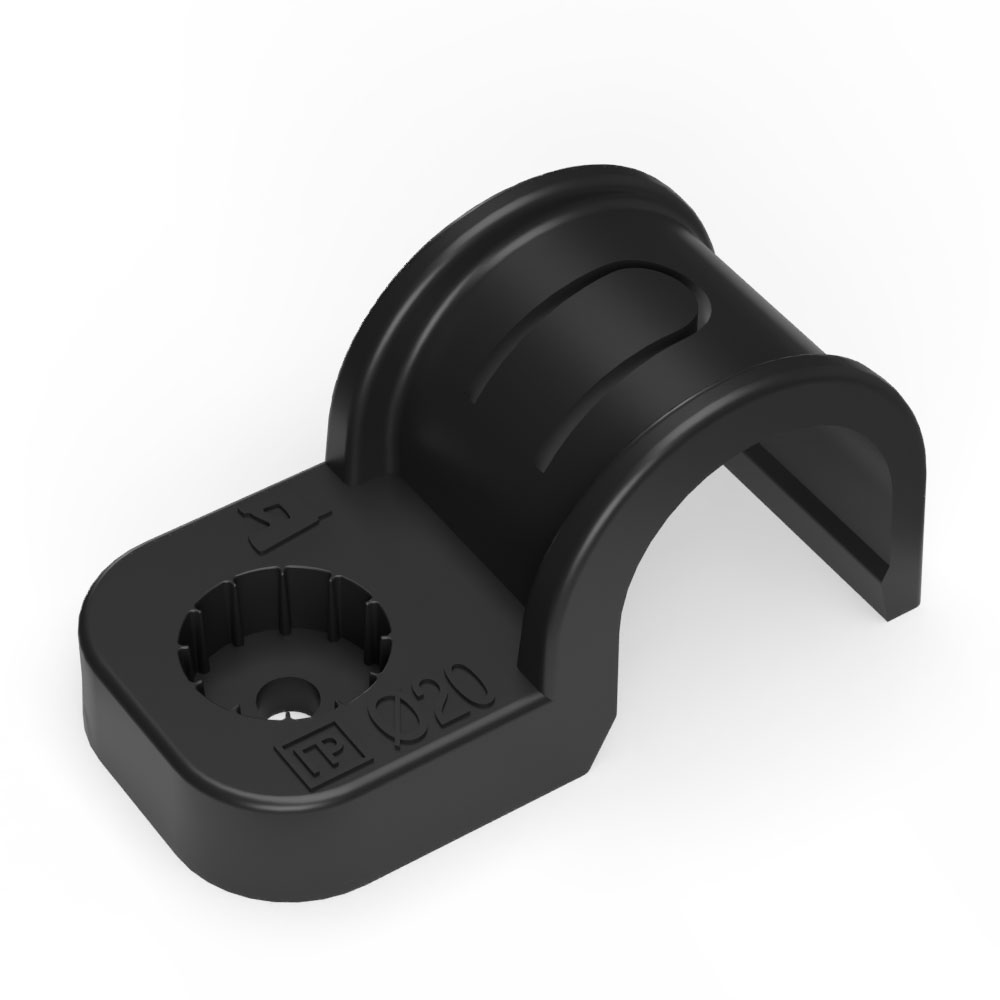 Крепеж-скоба пластиковая односторонняя для прямого монтажа атмосферостойкая черная в п/э d20 мм (50шт/600шт уп/кор) Промрукав