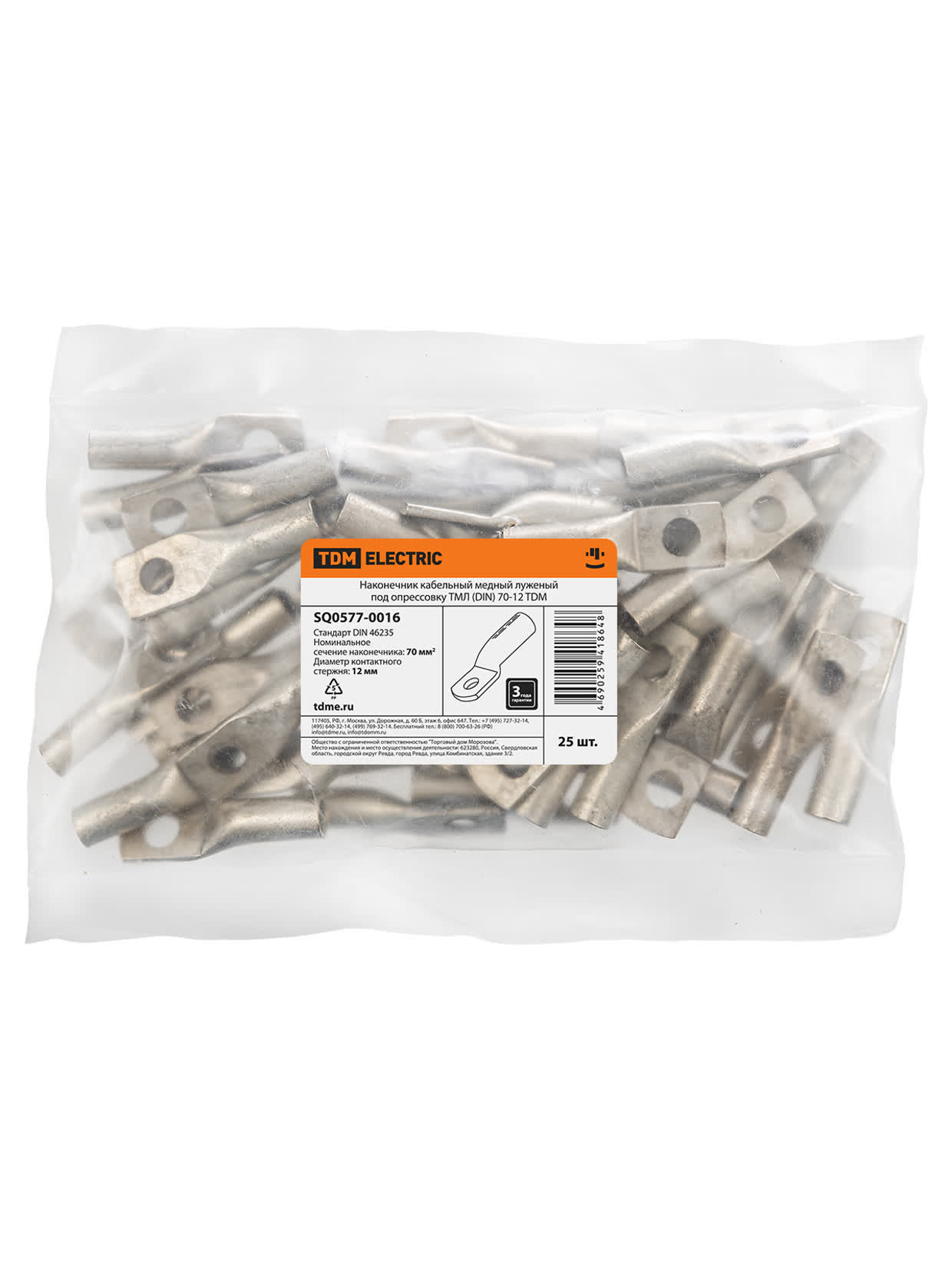 Наконечник кабельный медный луженый под опрессовку ТМЛ (DIN) 70-12 TDM доступен в интернет‑магазине ВольтМаркет. Покупая у нас, вы получаете дополнительные преимущества: