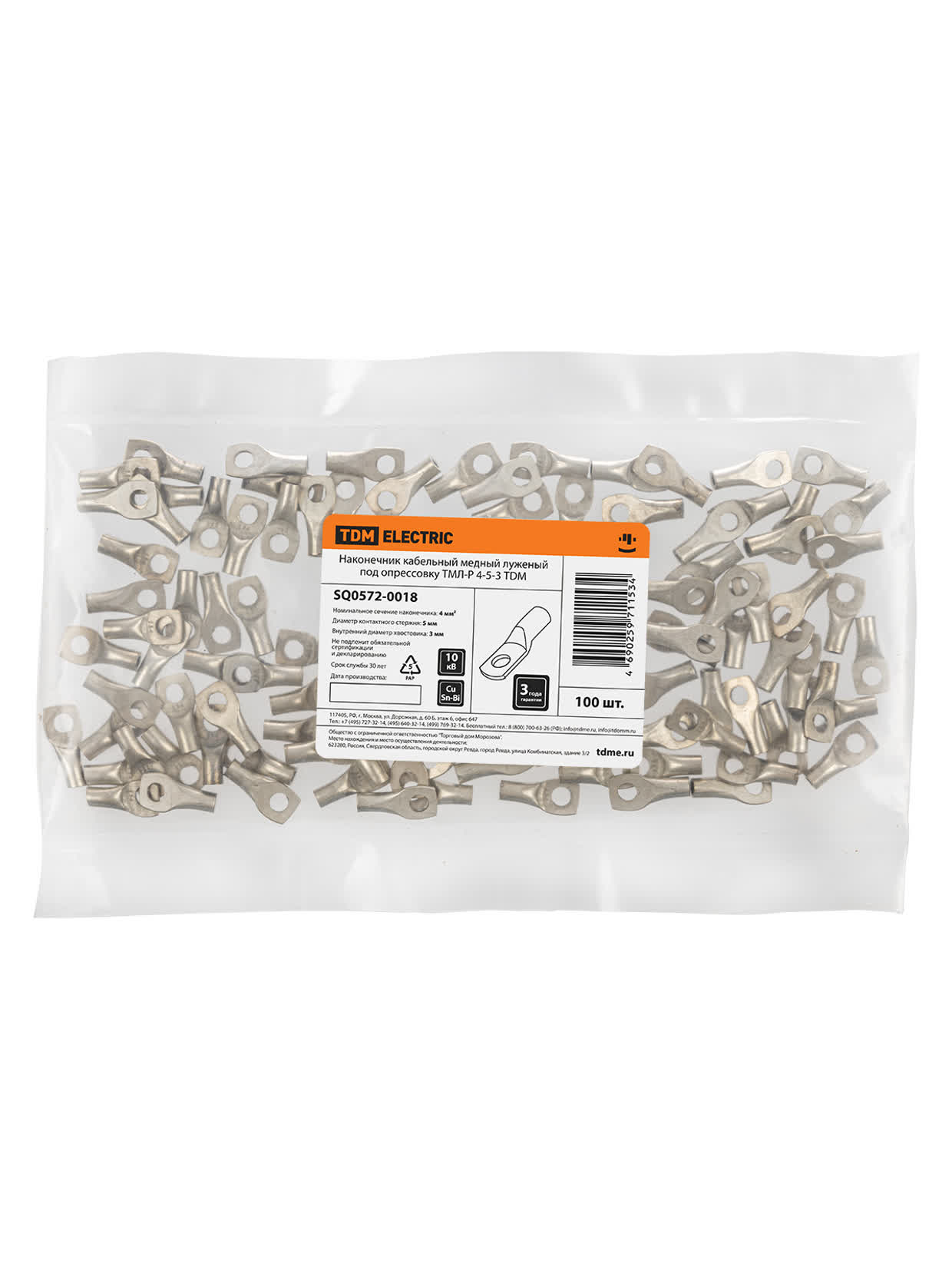 Наконечник кабельный медный луженый под опрессовку ТМЛ-Р 4-5-3 TDM