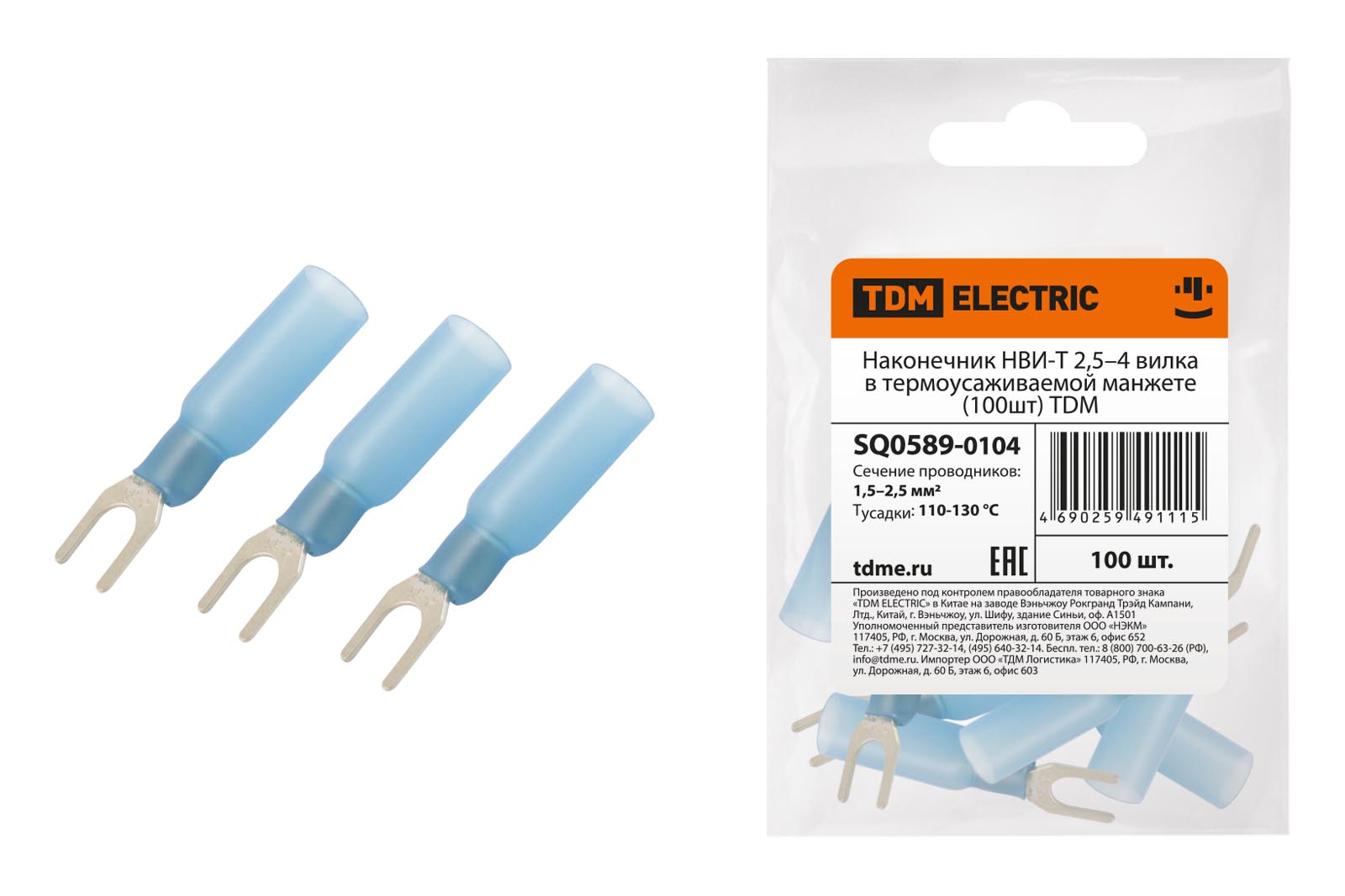 Наконечник НВИ-Т 2,5–4 вилка в термоусаживаемой манжете (100шт) TDM